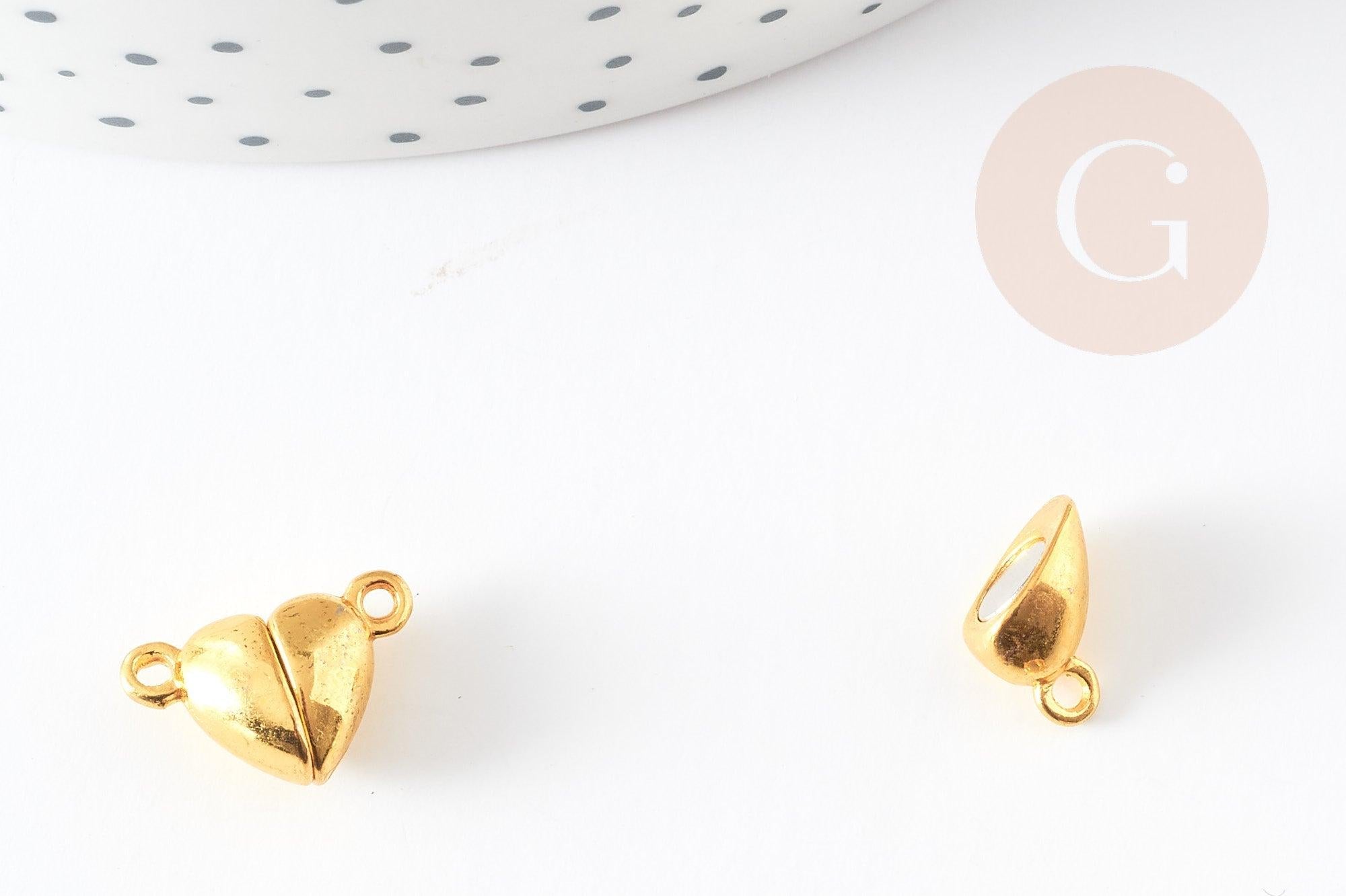 Un cierre magnético de zamac bañado en oro en forma de corazón para tus collares, pulseras y collares largos: sólido y de alta calidad, resaltará tus joyas de amor.