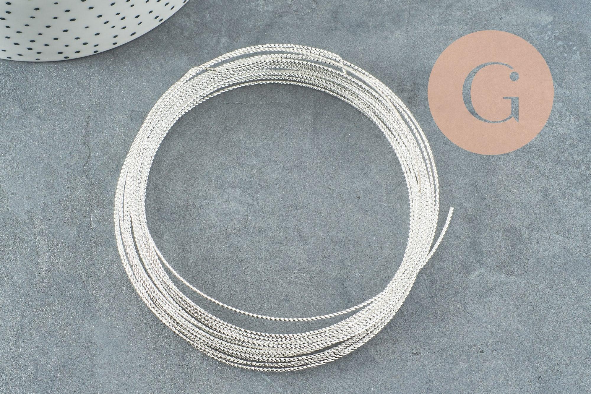 Fil métallique laiton argenté torsadé 0.8mm,x1 mètre G9640