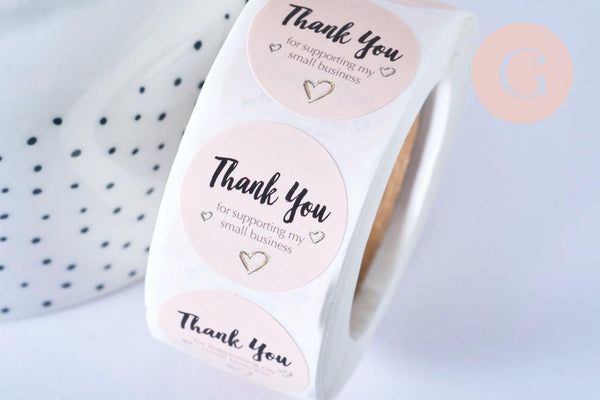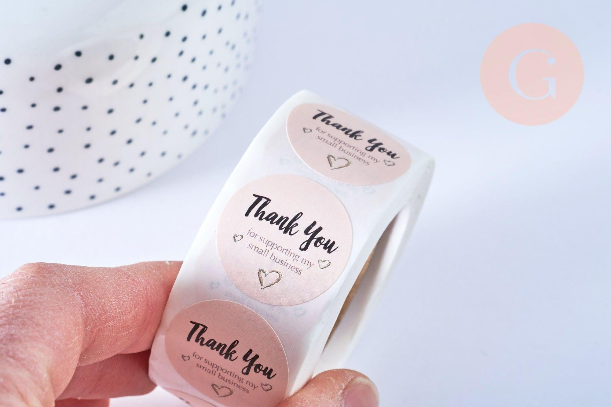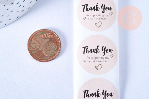 Pegatinas de agradecimiento redondas rosas 25mm, x500 (G6134)