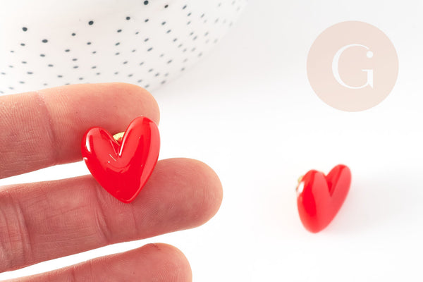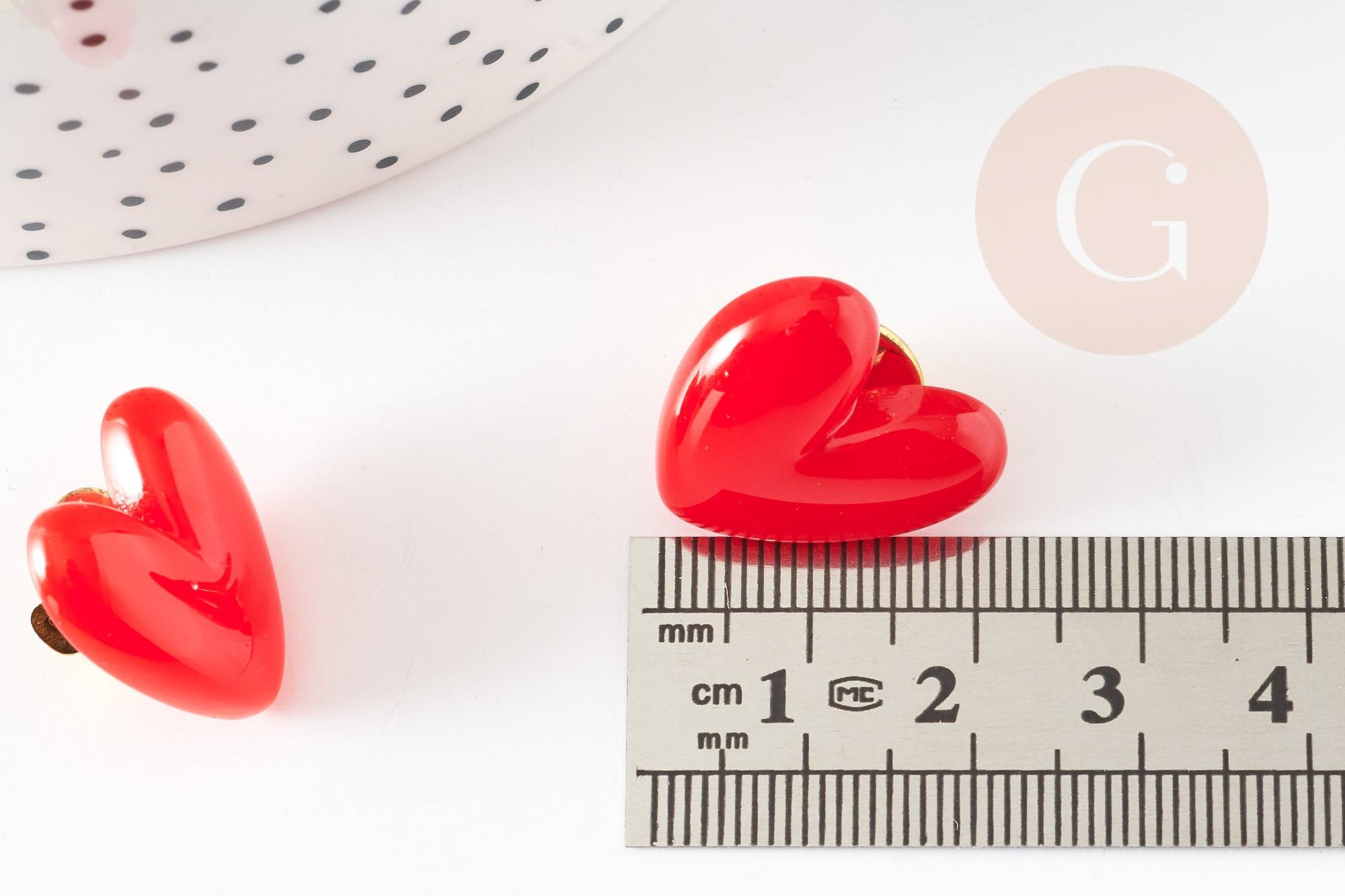 Broche pins coeur résine rouge 20mm, x1 (G9260)