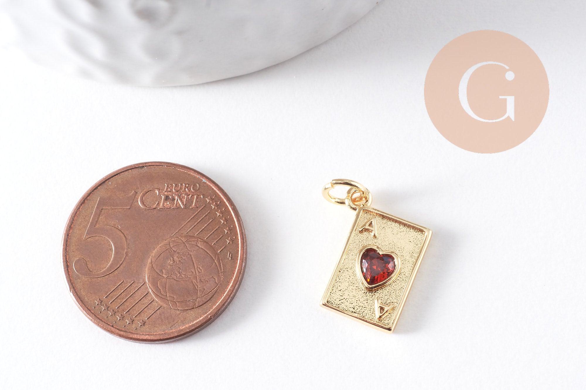 Colgante de naipe con corazón de circonita roja, latón chapado en oro de 18 quilates, 15 mm x 1 (G10288)