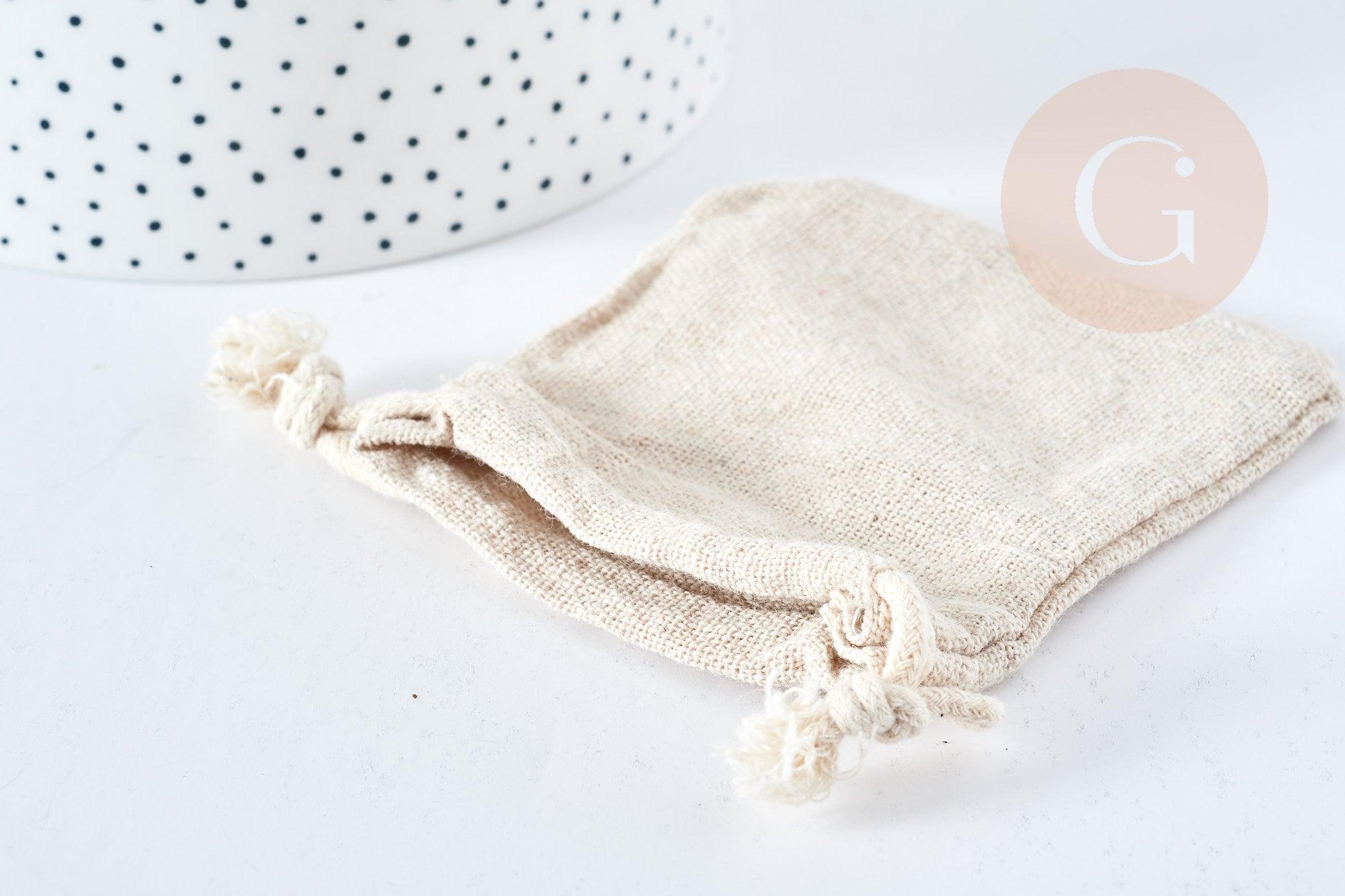 El estuche para joyas de algodón blanco crudo de 9 cm es un complemento versátil para guardar, envolver y regalar tus joyas de una forma elegante y práctica. Esta bolsa está diseñada para proporcionar una solución sencilla y práctica para guardar sus joyas y protegerlas de arañazos y daños.