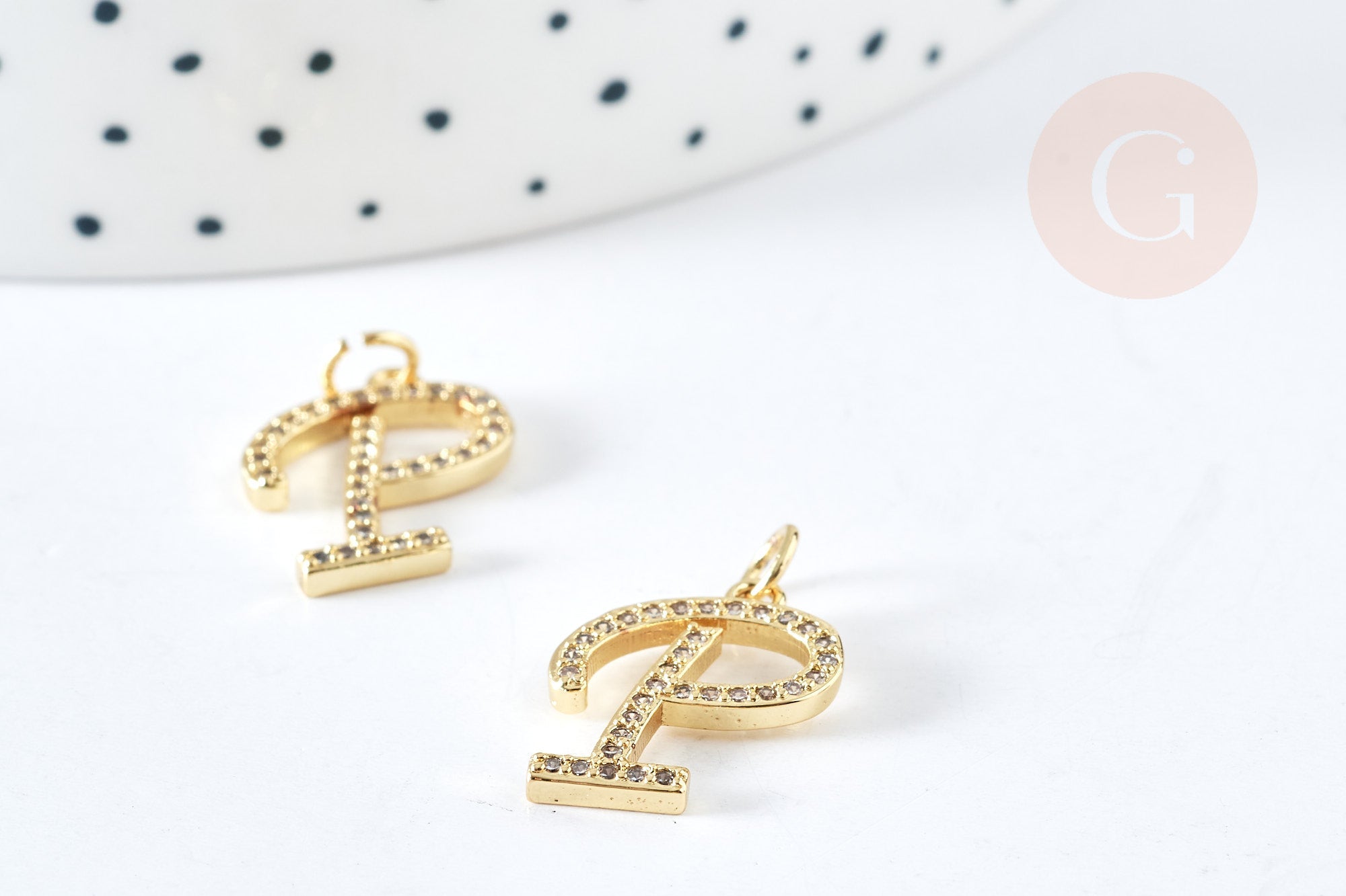 Pendentif lettre P initiale laiton doré zircon blanc 16mm, pendentif initiale prénom x1 G8441