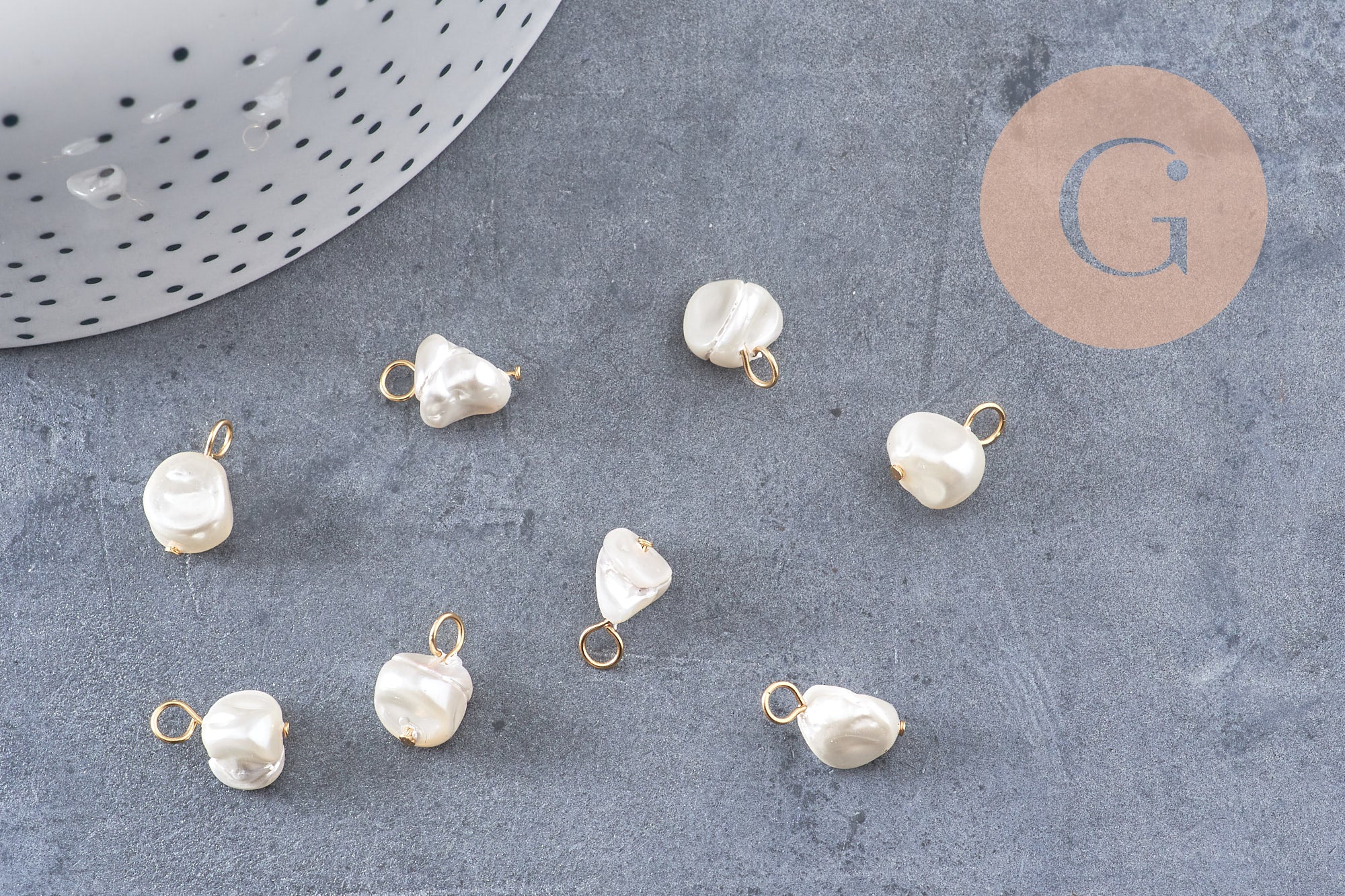 Breloque Perle d'eau douce naturelle blanche laiton et anneau acier 304 inoxydable doré, x1 (G7928)