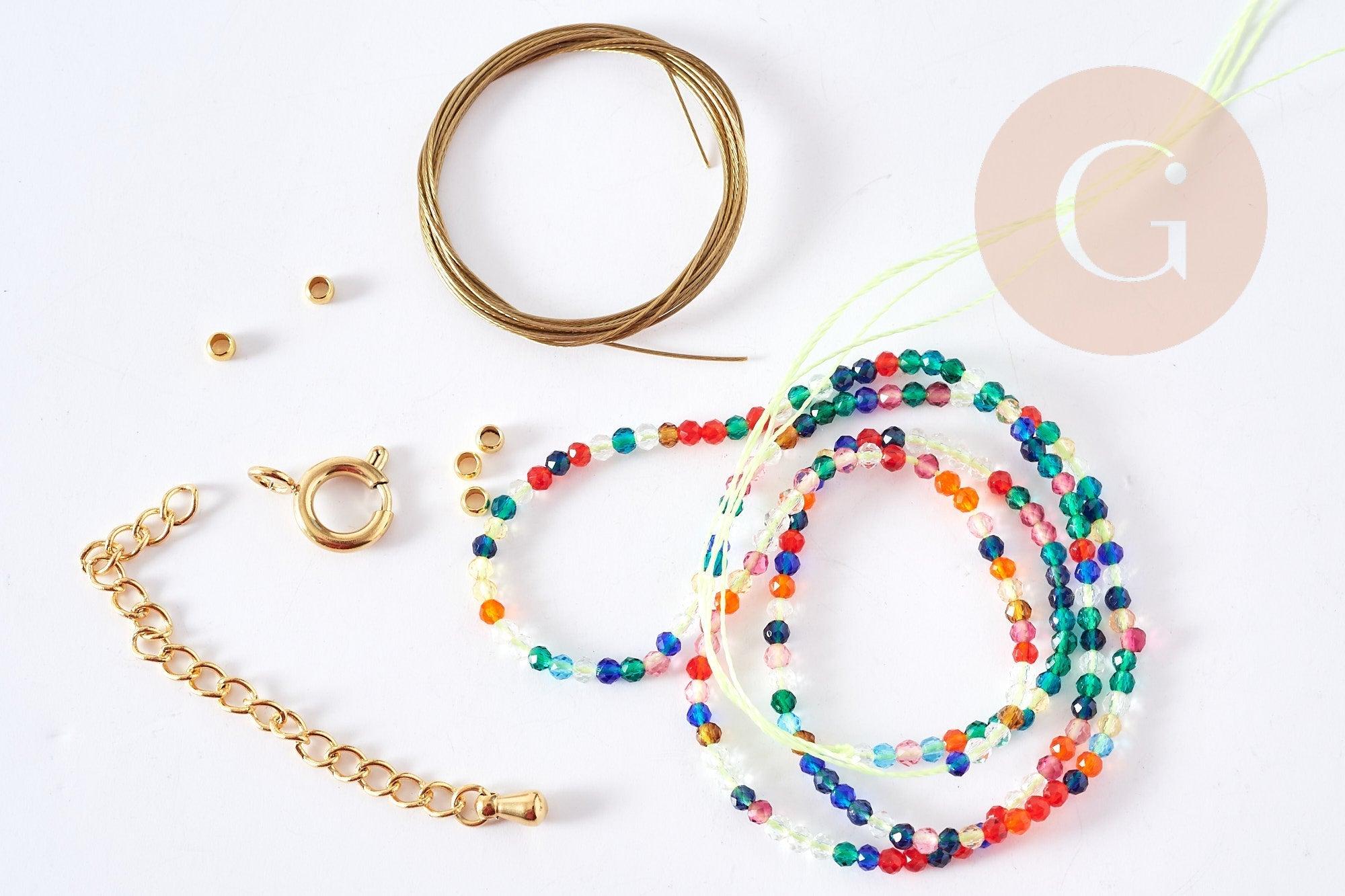 Descubra nuestro kit de joyería DIY, una creación elegante que encarna delicadeza y personalización. Este collar de cuentas , delicadamente ajustado cerca del cuello, está adornado con cuentas de cristal facetadas multicolores que captan sutilmente la luz.