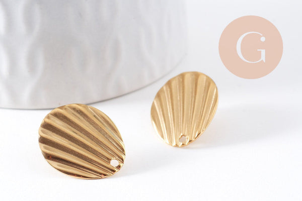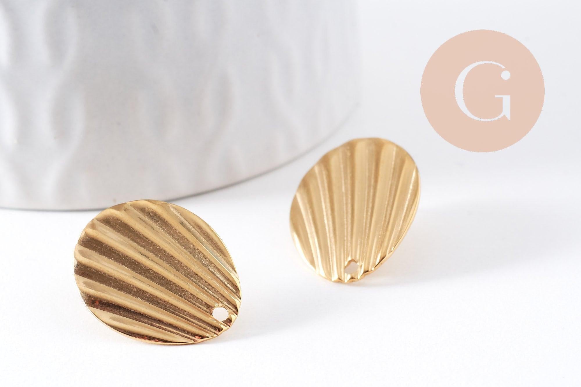 Clous-puces oreille coquillage acier 304 inoxydable dore 1 trou 21.5mm, la paire (G10286)