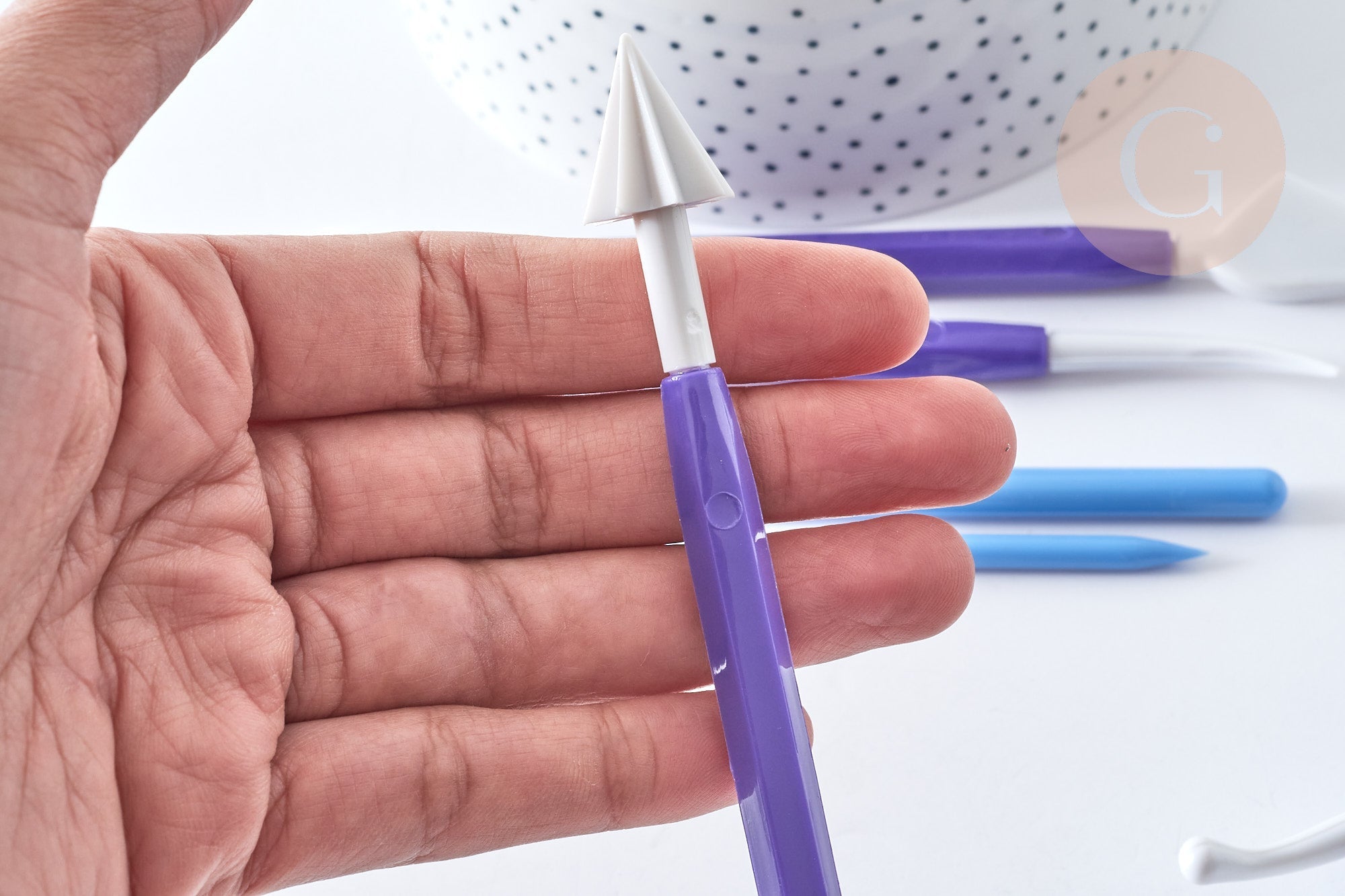 Un conjunto de 9 herramientas Para modelado , escultura, cerámica en plástico morado y blanco.