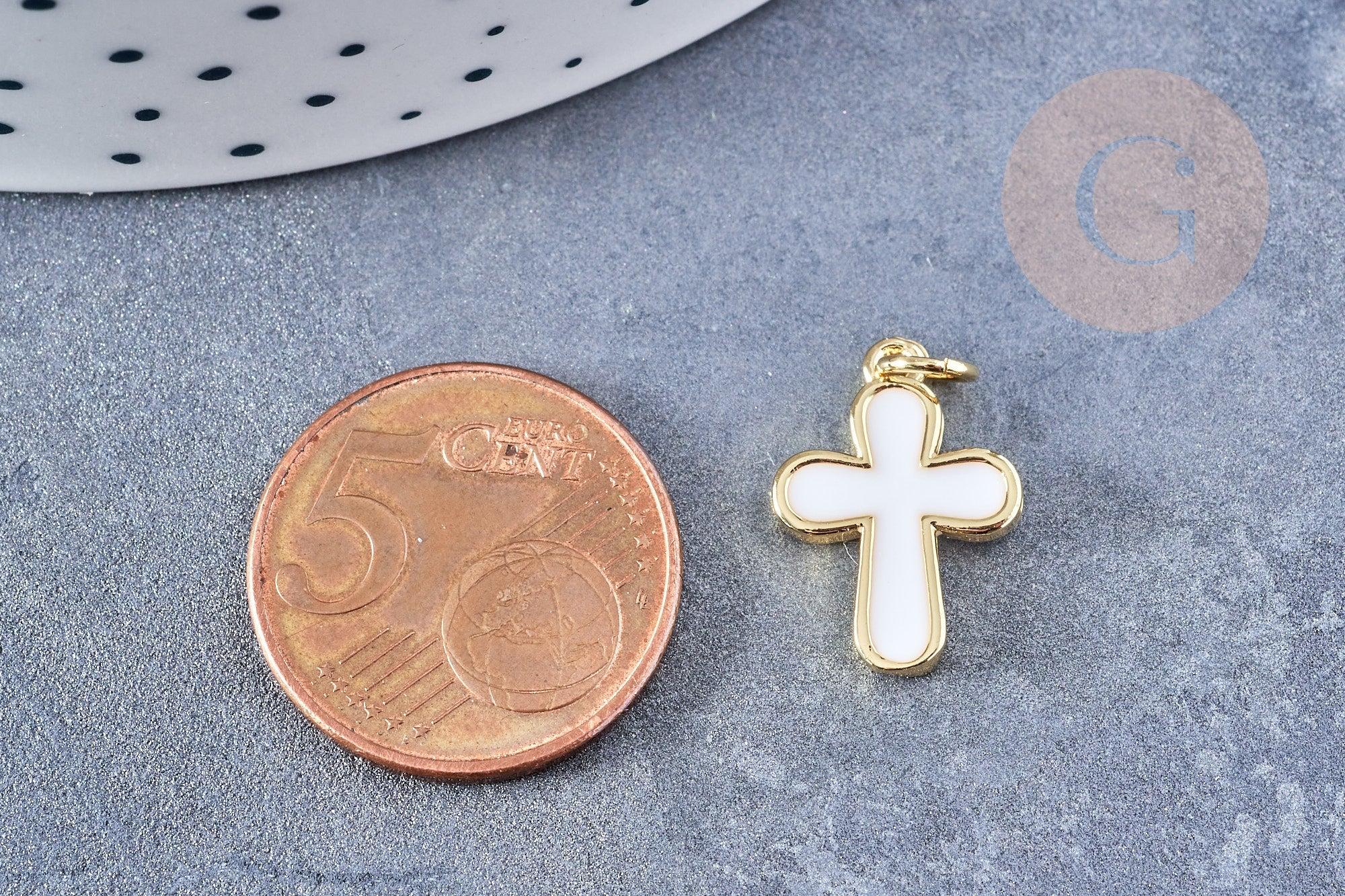 Colgante cruz de latón dorado 18K esmalte blanco 18mm, colgante de oro para creación de joyas, x1 G8583