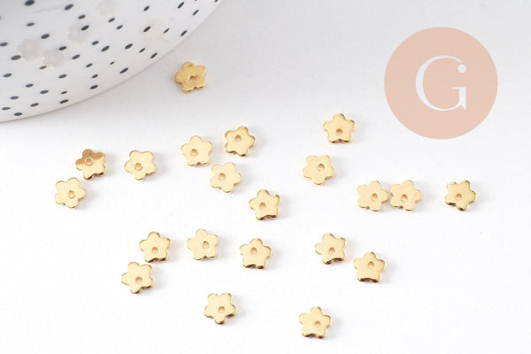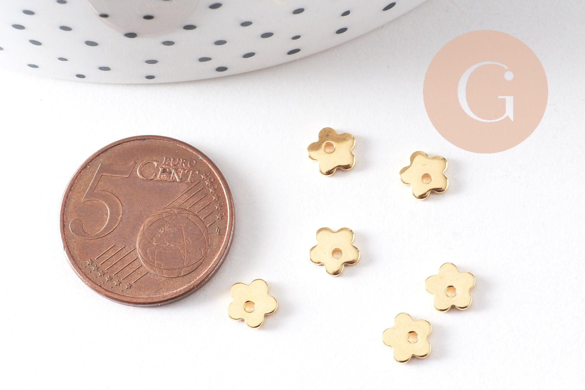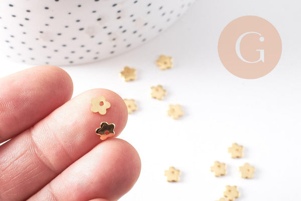Estos pequeños charms de flores están elaborados en acero inoxidable dorado 201 , ideales para añadir un toque floral y delicado a tus creaciones DIY. Su tamaño mini los hace perfectos para complementar joyas finas y poéticas.