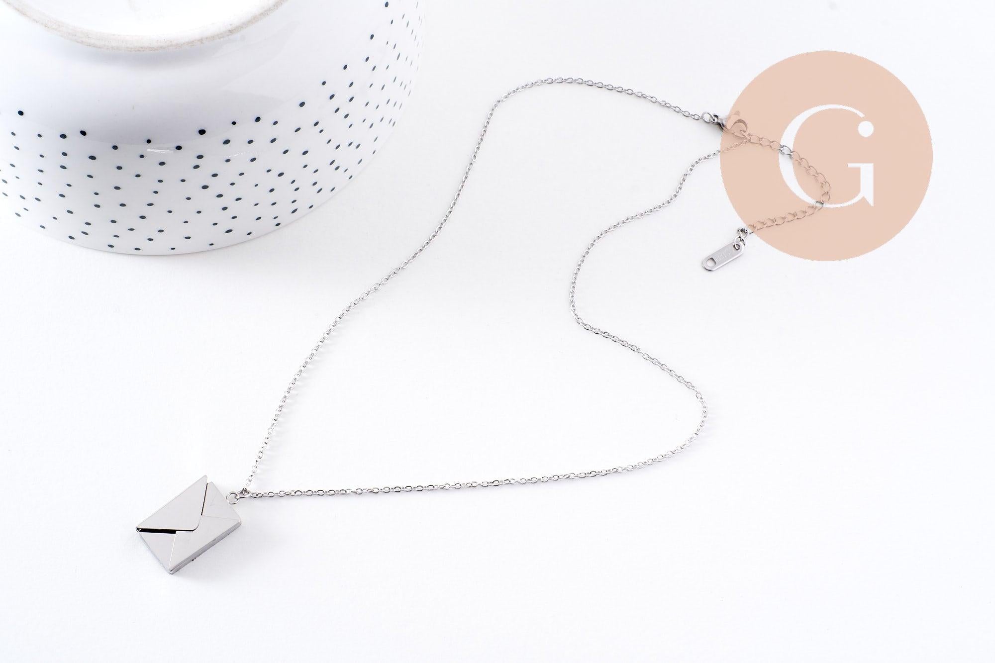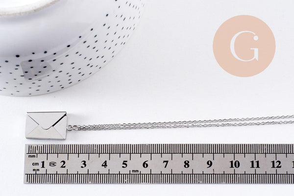 Collier pendentif locket enveloppe avec carte personnalisable acier 304 inoxydable platine, x1 (G10203)