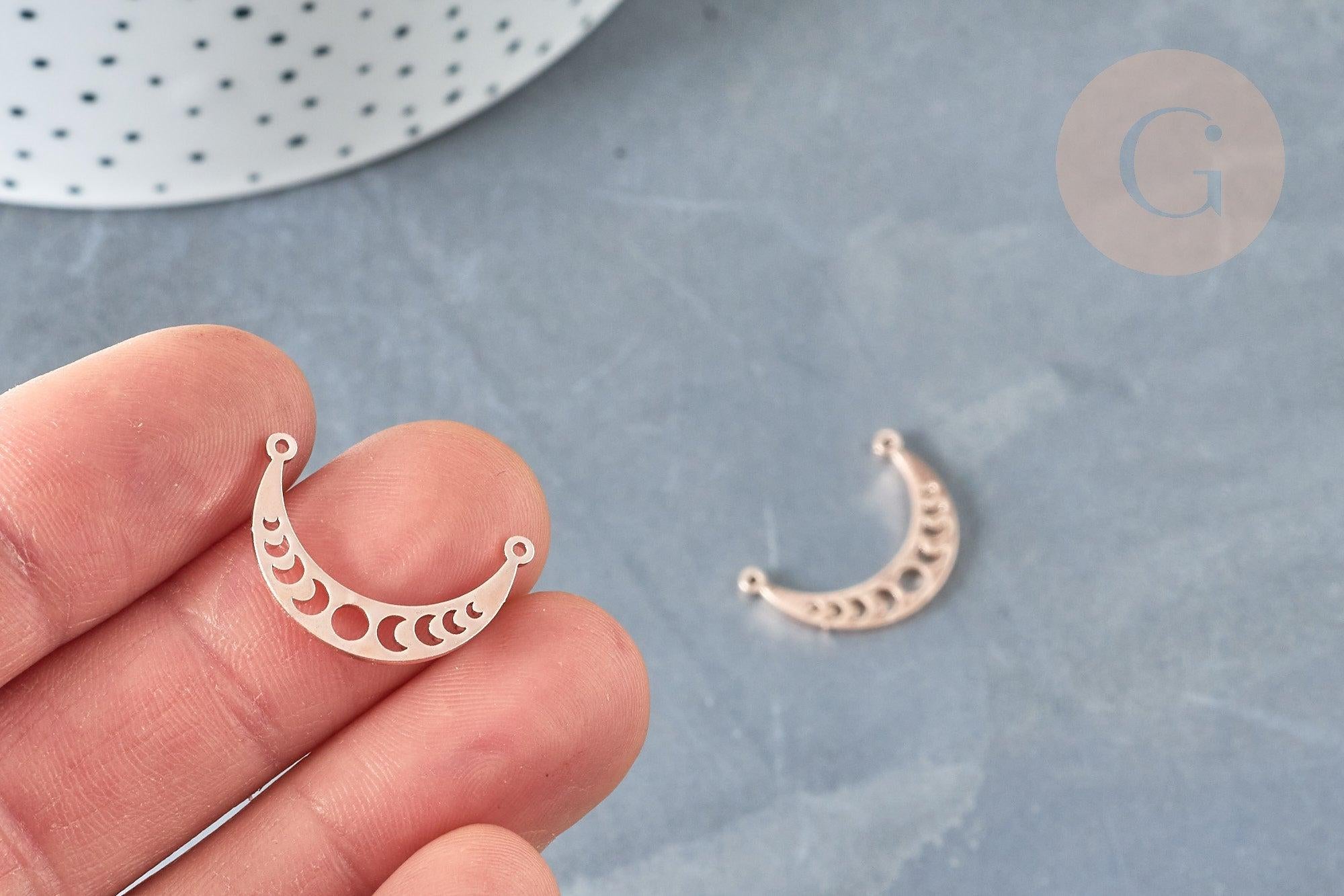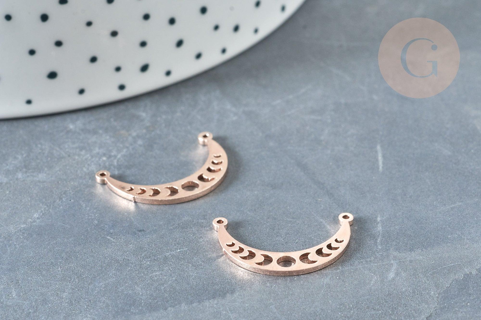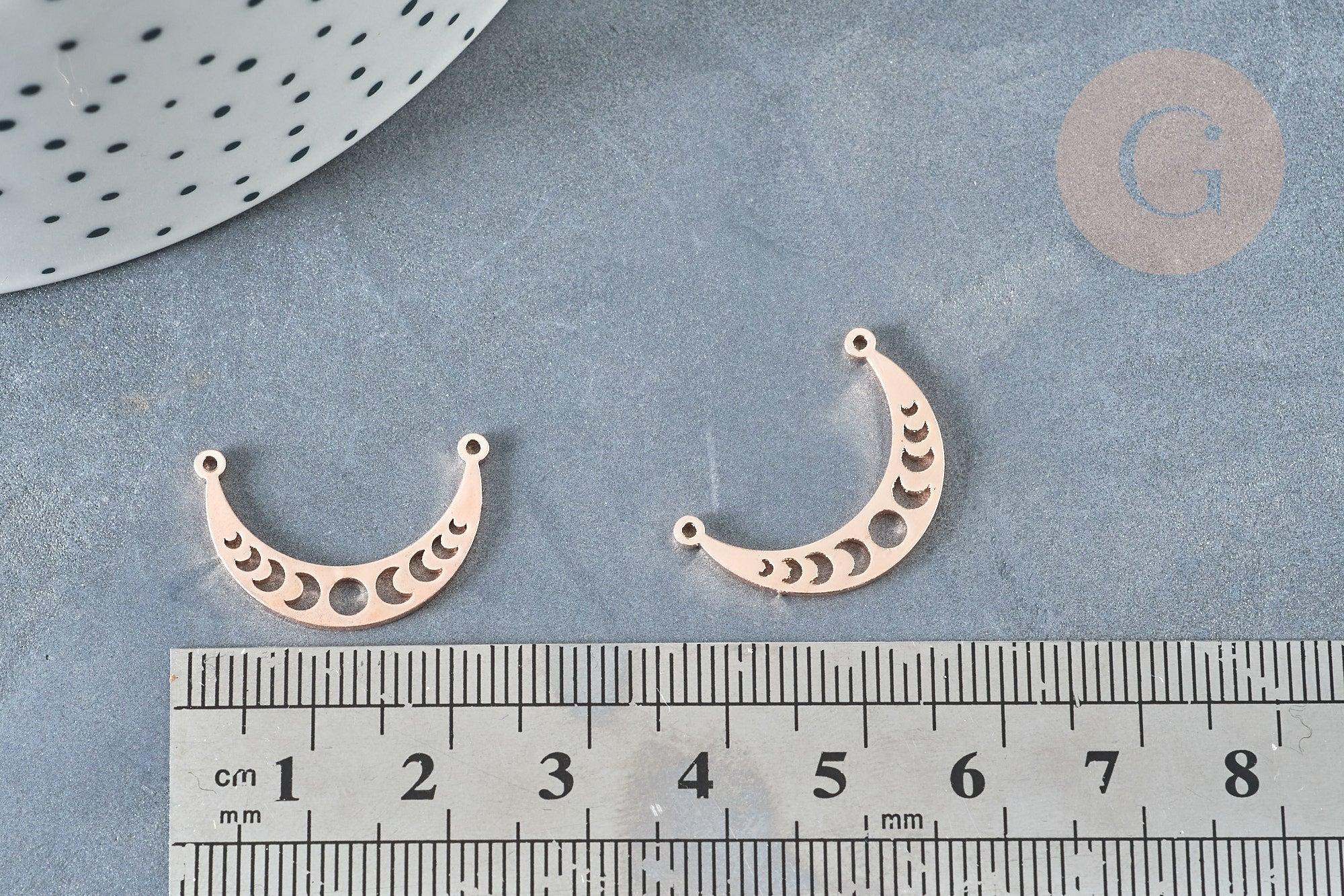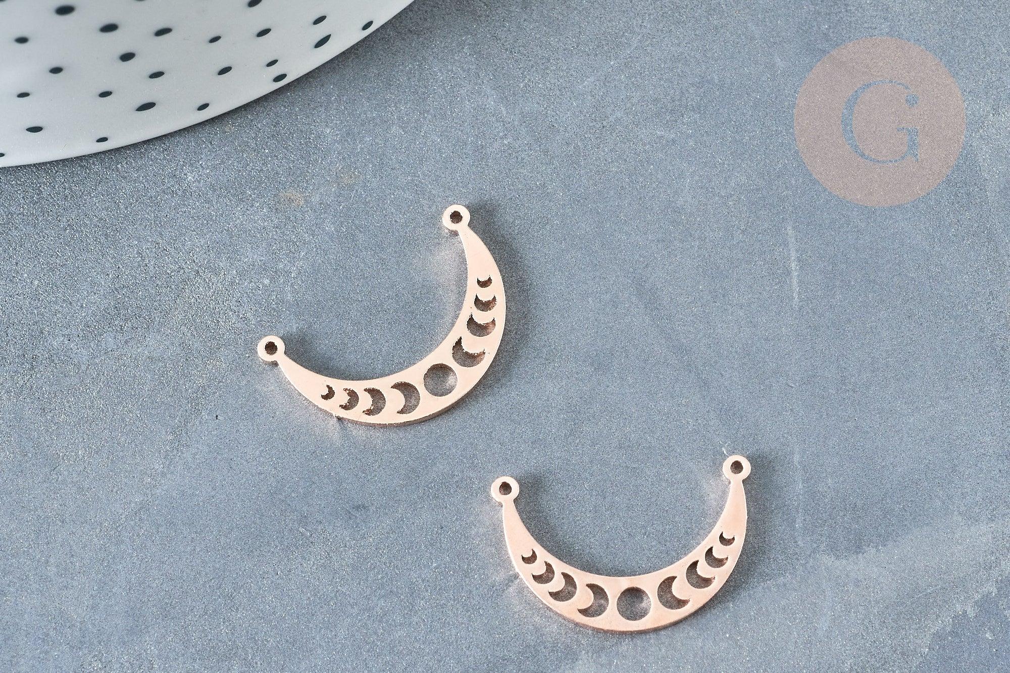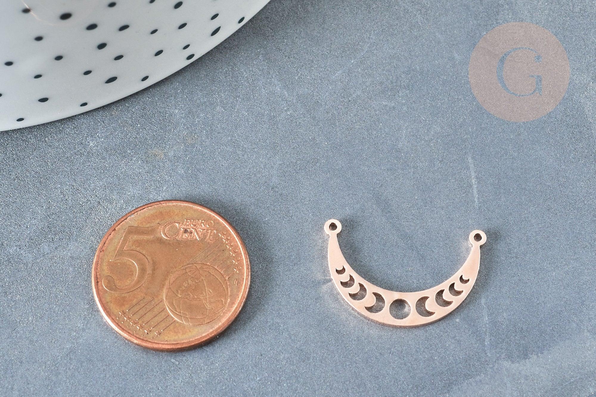 Colgante de luna calada con conector en acero inoxidable 304, oro rosa, 21,5 mm (x1) (G8370)