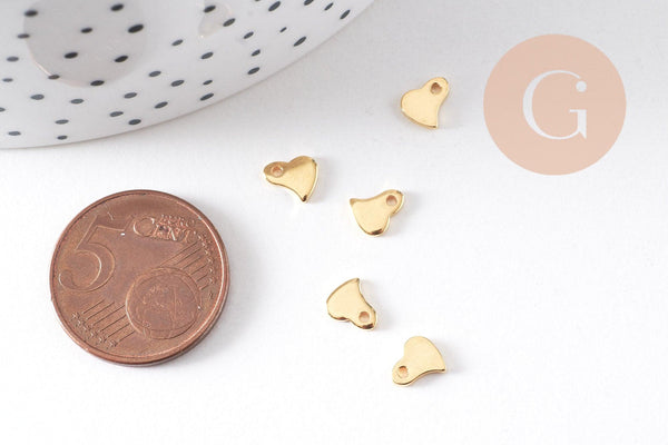 Charms estilizados en forma de corazón en acero inoxidable bañado en oro, perfectos para personalizar tus creaciones de joyería con un toque delicado y romántico. Discreto y refinado, este charm se adapta fácilmente a tus cadenas, pulseras o pendientes DIY.