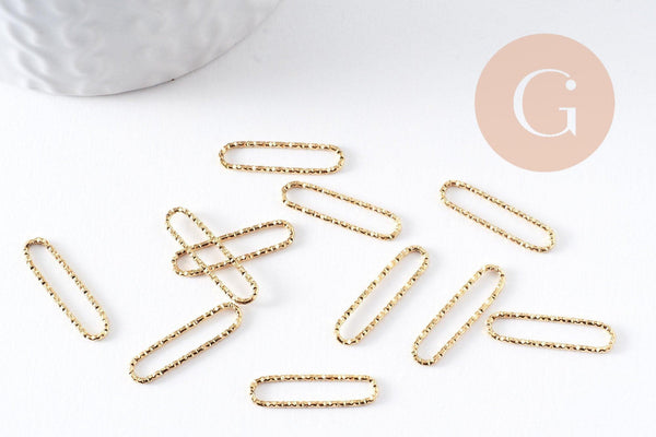 Aporta un toque de refinamiento y modernidad a tus creaciones con este colgante con conector ovalado en acero inoxidable texturizado bañado en oro IP 18K . Su acabado dorado brillante y su elegante textura añaden una dimensión única a tus joyas DIY, perfecta para diseños contemporáneos y sofisticados.