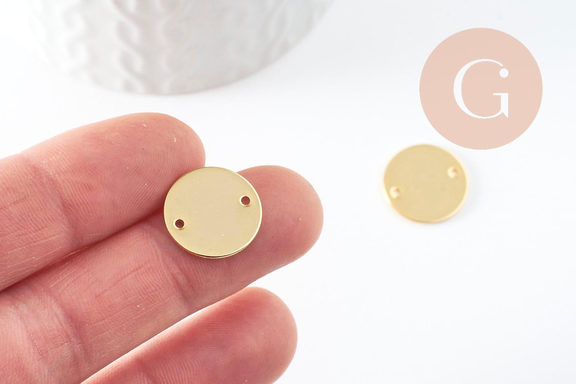 Este colgante con conector redondo de acero inoxidable bañado en oro de 16 mm es un elemento versátil perfecto para crear joyas elegantes y modernas.
