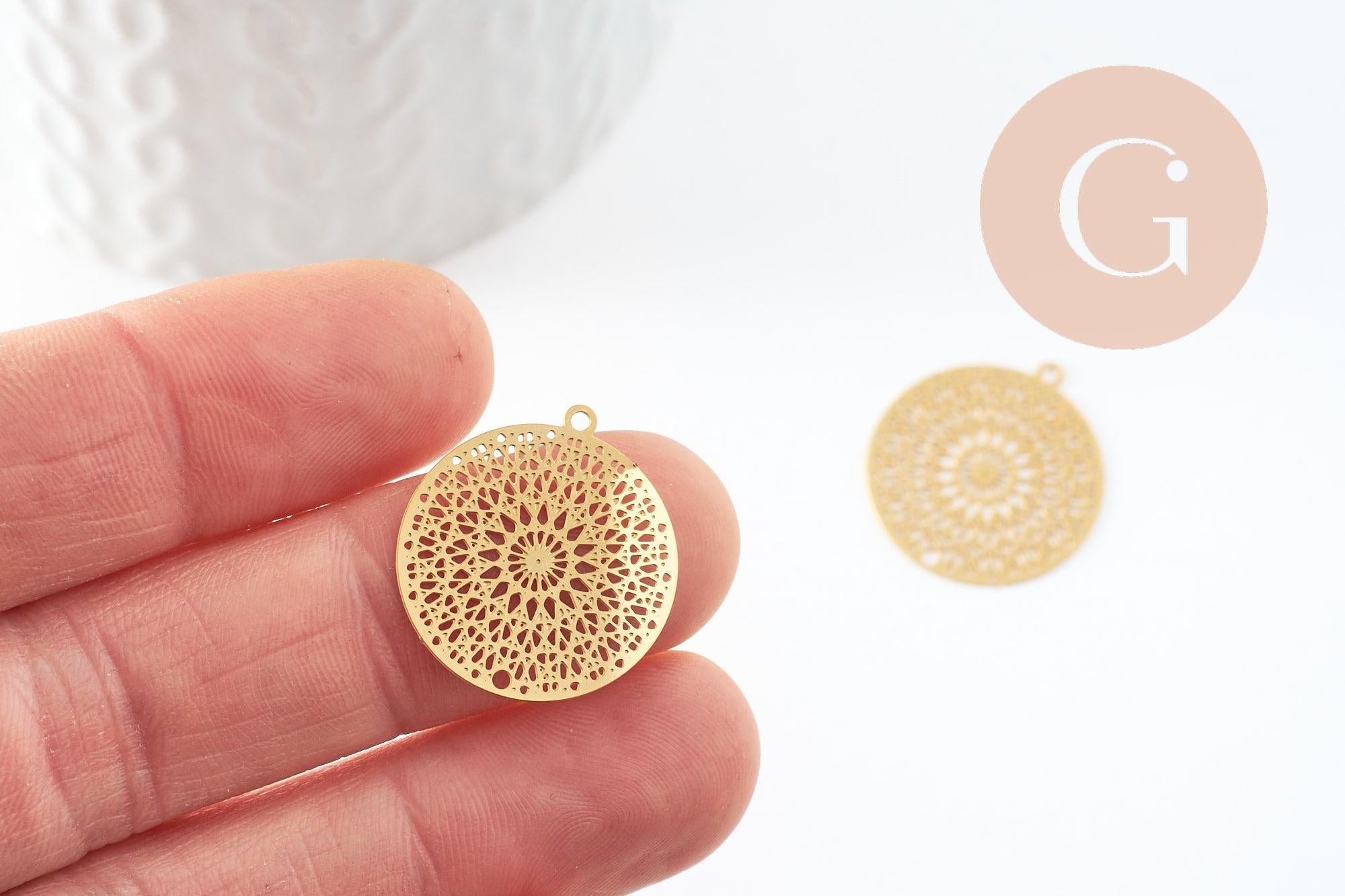 Adopta este colgante de flor de mandala en acero inoxidable 201 bañado en oro de 18 quilates , forma poligonal. Éste fue realizado utilizando el método de " corte láser ". Esta técnica de corte por láser permite una precisión y nitidez perfectas.