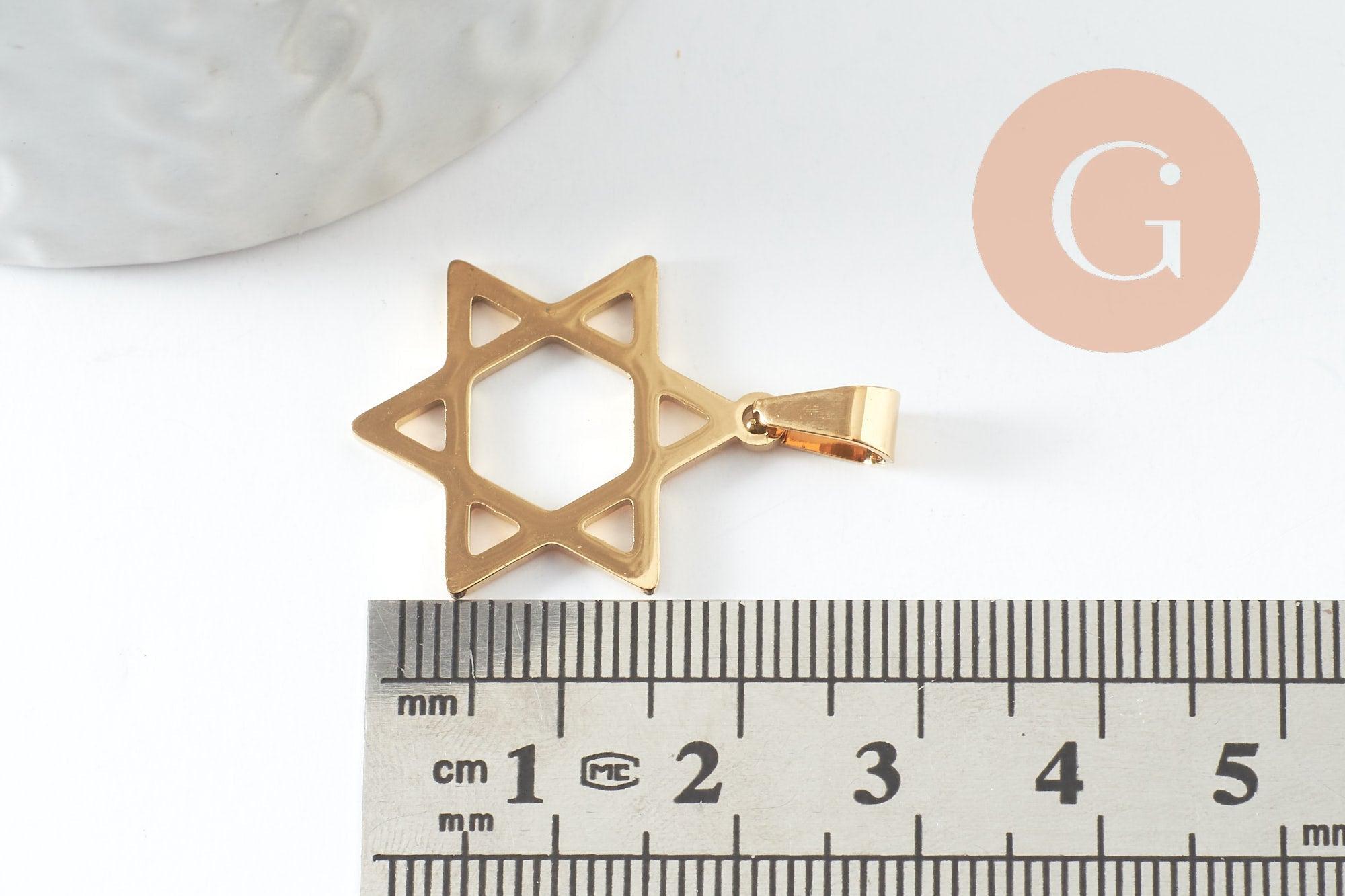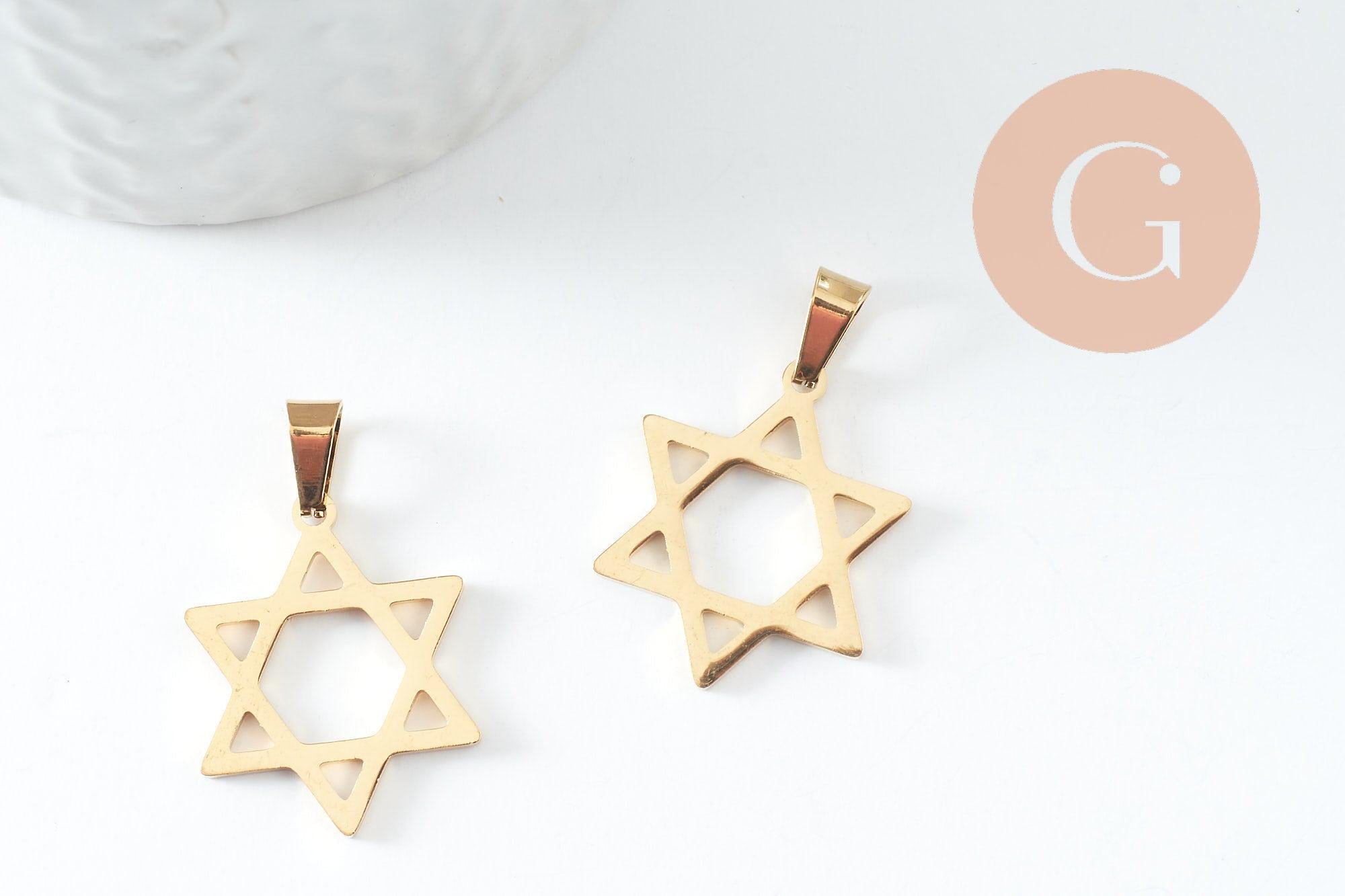 Con su calidad superior, este colgante dorado de estrella de seis puntas de acero inoxidable es una elección perfecta para los diseñadores de joyas que buscan crear piezas duraderas y de moda.