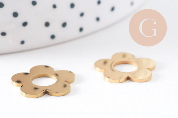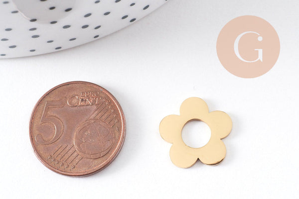 Aporta un toque floral y refinado a tus creaciones con este colgante de flor de acero inoxidable oro 304 , con un diámetro de 16mm. Su diseño elegante, con un agujero central, es ideal para creaciones minimalistas o románticas. Su acabado PVD oro garantiza una excelente durabilidad en el tiempo, sin empañarse.