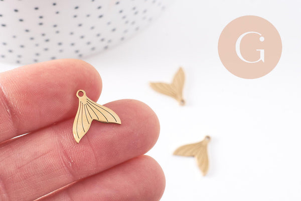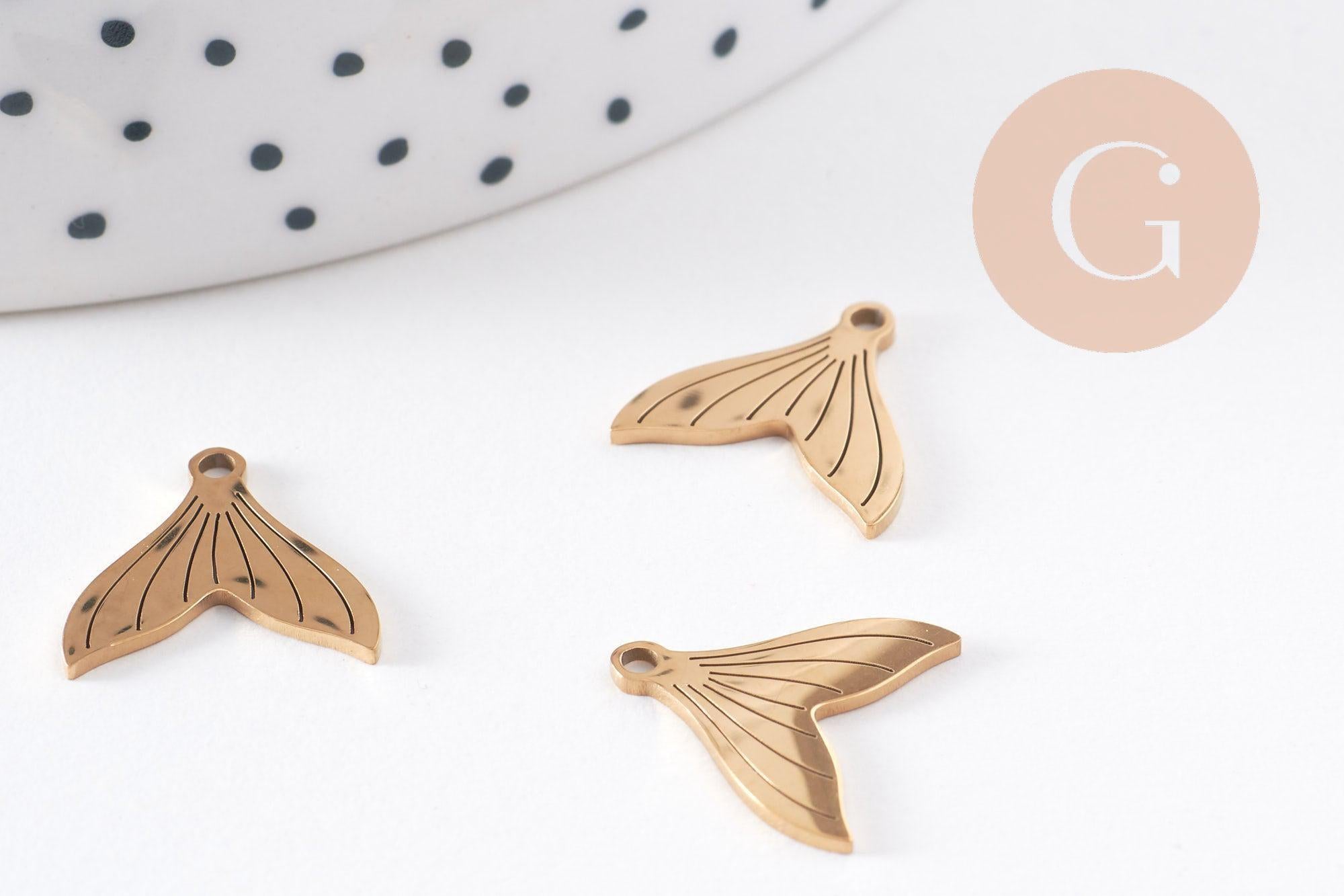 Este colgante de cola de pez de acero inoxidable bañado en oro de 14 mm es ideal para creaciones inspiradas en el mundo marino.