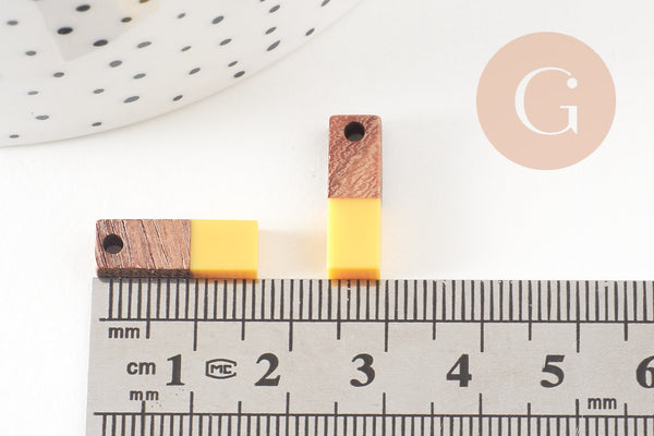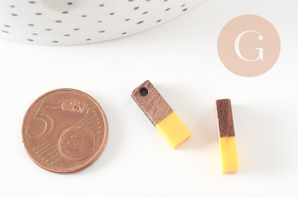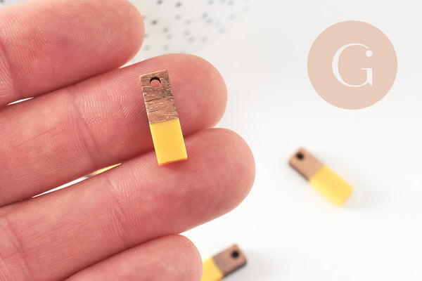 Juego de 5 cuentas colgantes rectangulares amarillas de madera y resina de 17 mm