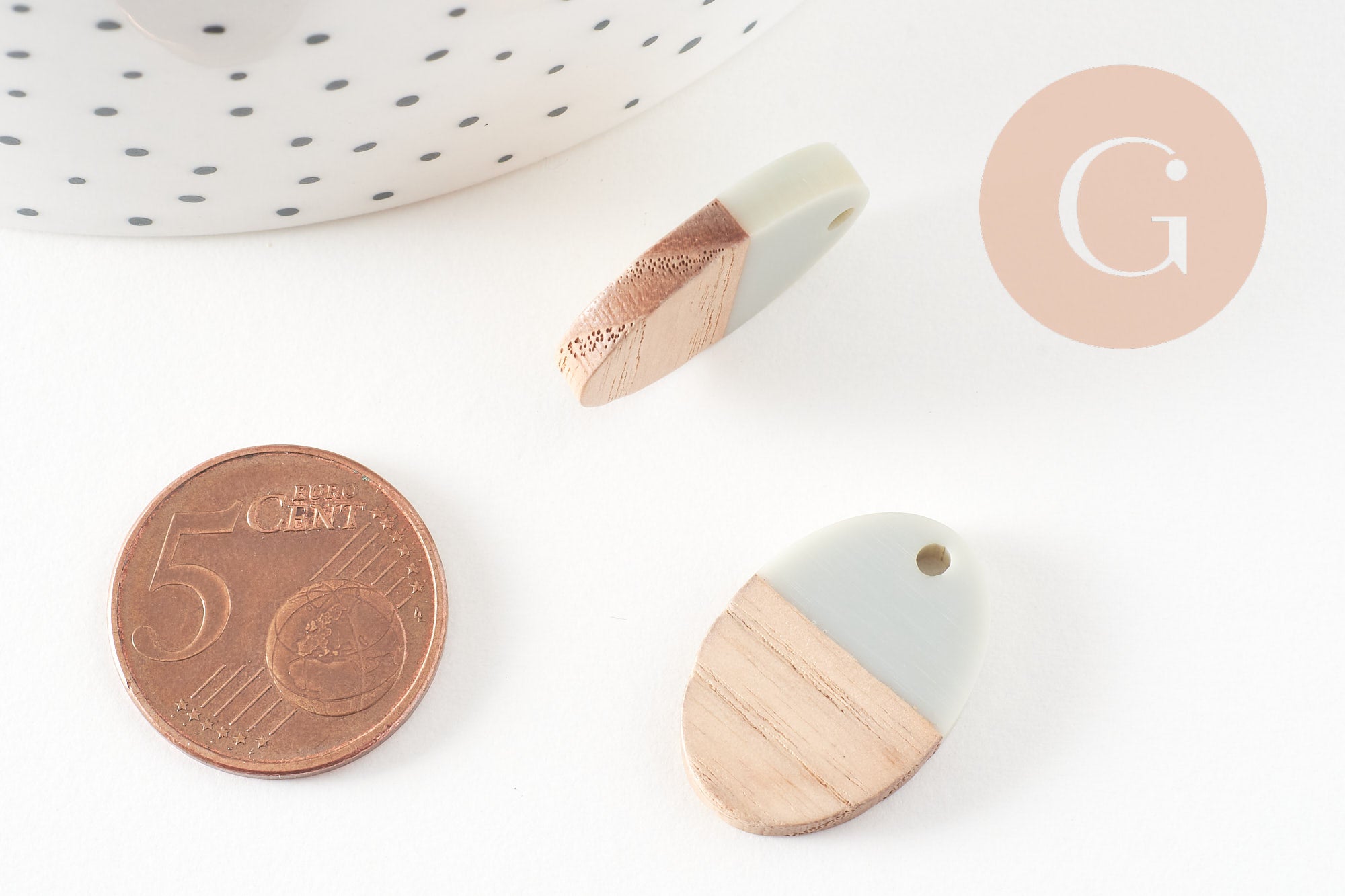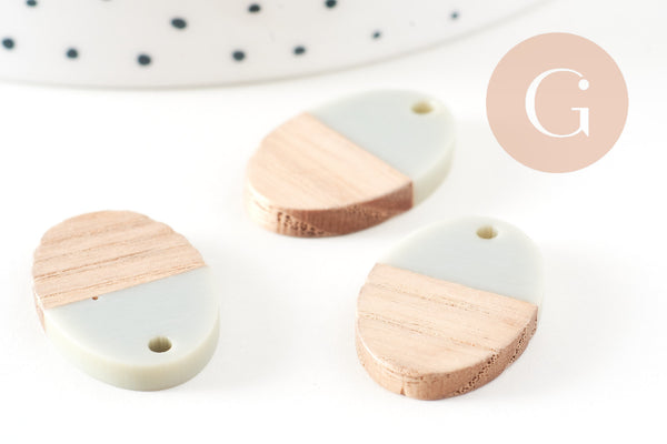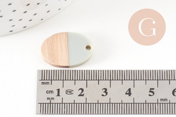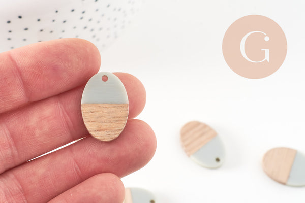 pendentif ovale bois résine gris, perle bois naturel, Perle géométrique,perle création bijoux bois,23mm,x5 G7529