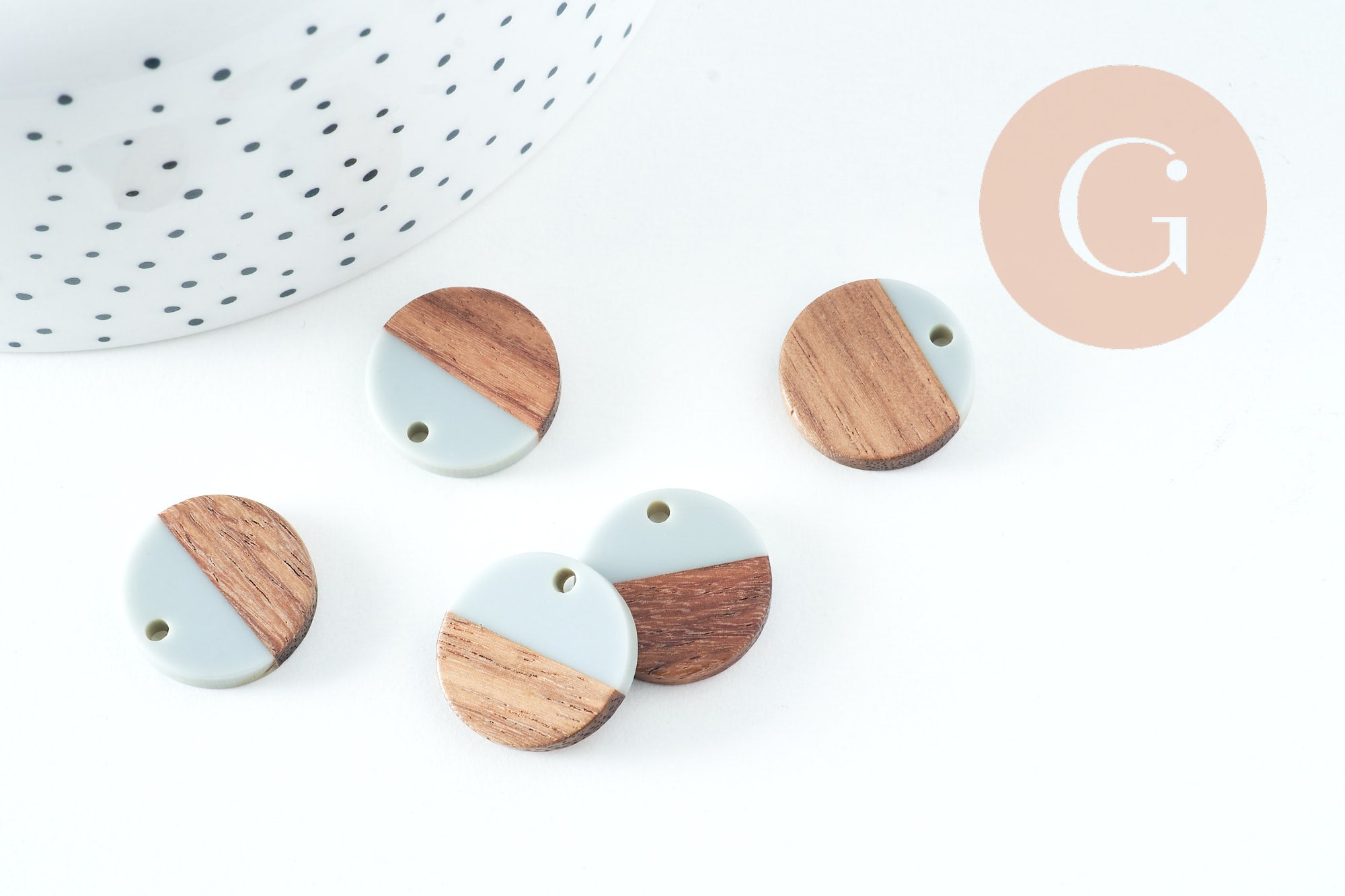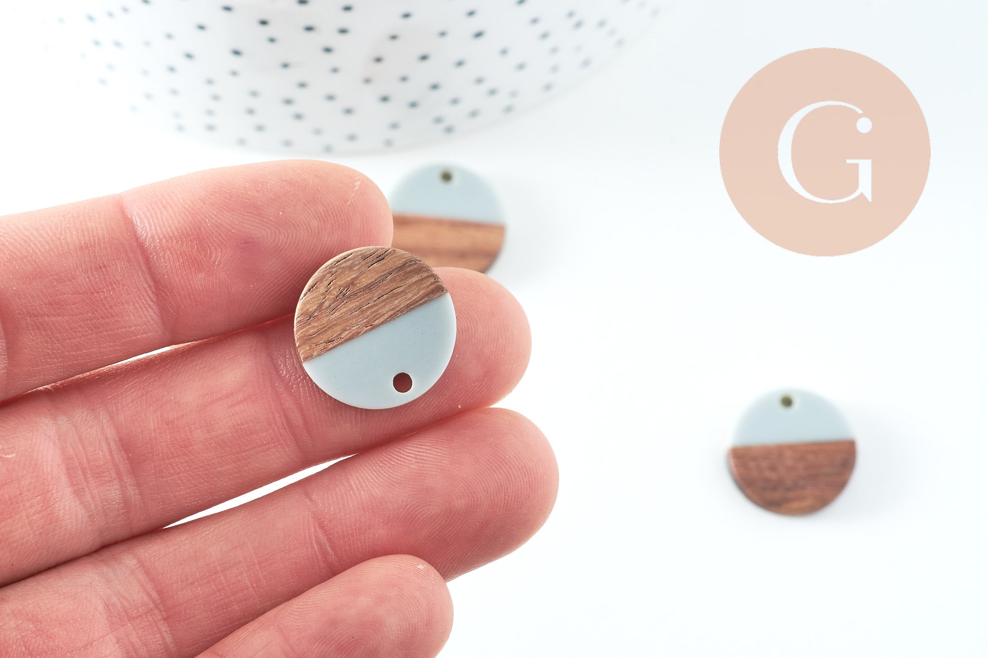 Colgantes en forma de disco de madera y resina coloreada que permiten realizar colgantes muy bonitos o bucles completos de espíritu geométrico.