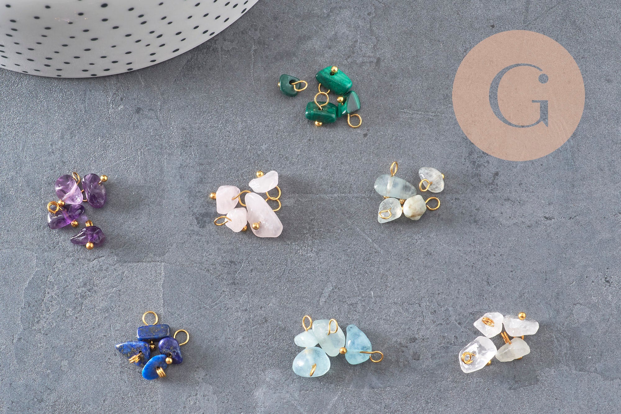 Este moderno dije es perfecto para todo tipo de joyería: collares, aretes, pulseras o collares largos. Le dará un toque de luz mineral a tus creaciones.