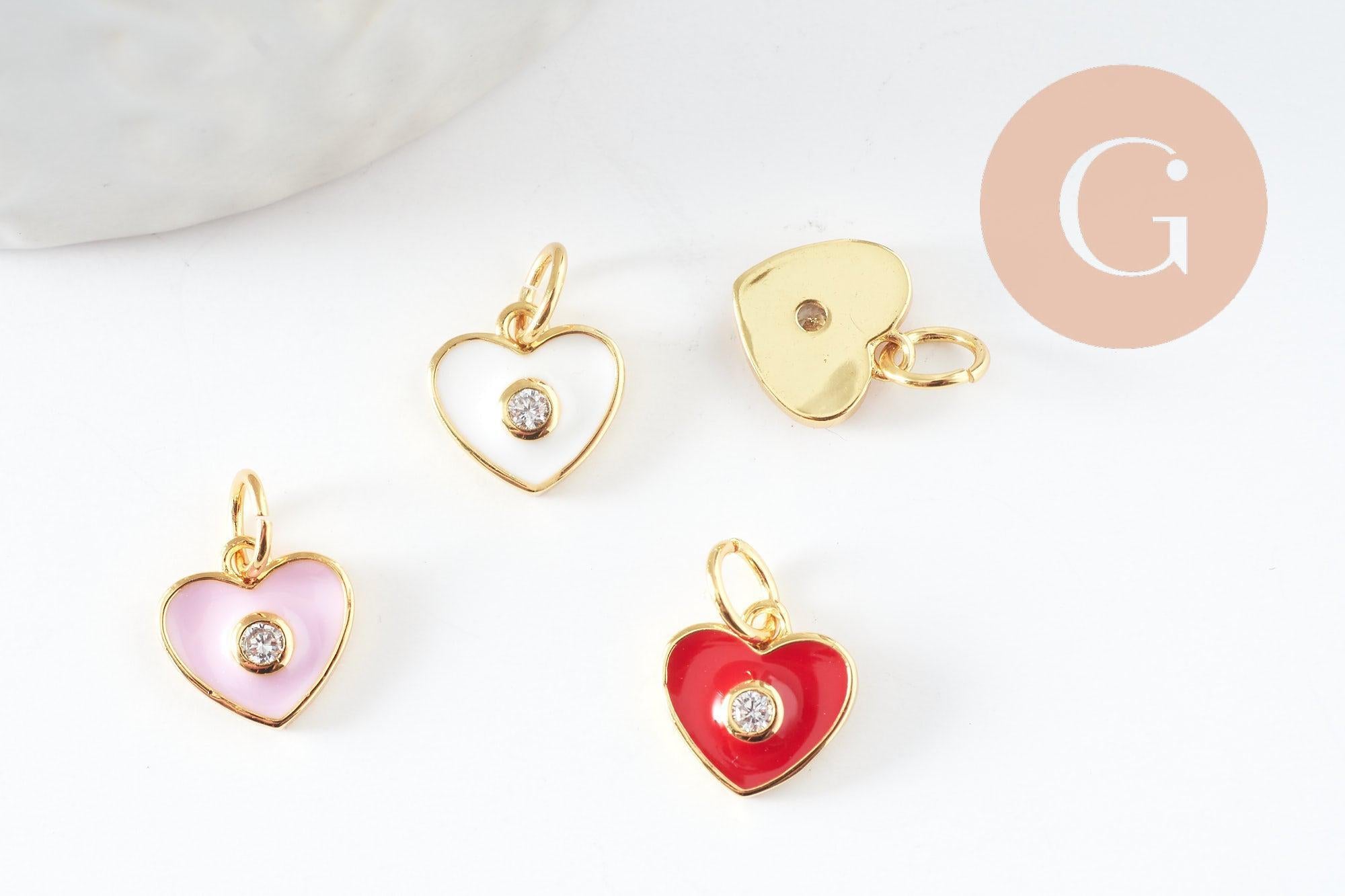 Un pequeño colgante de corazón en latón bañado en oro y esmalte de color con un bonito cristal de circonita blanca en el centro, un accesorio para tener siempre en tu caja de herramientas para realizar todas tus joyas.