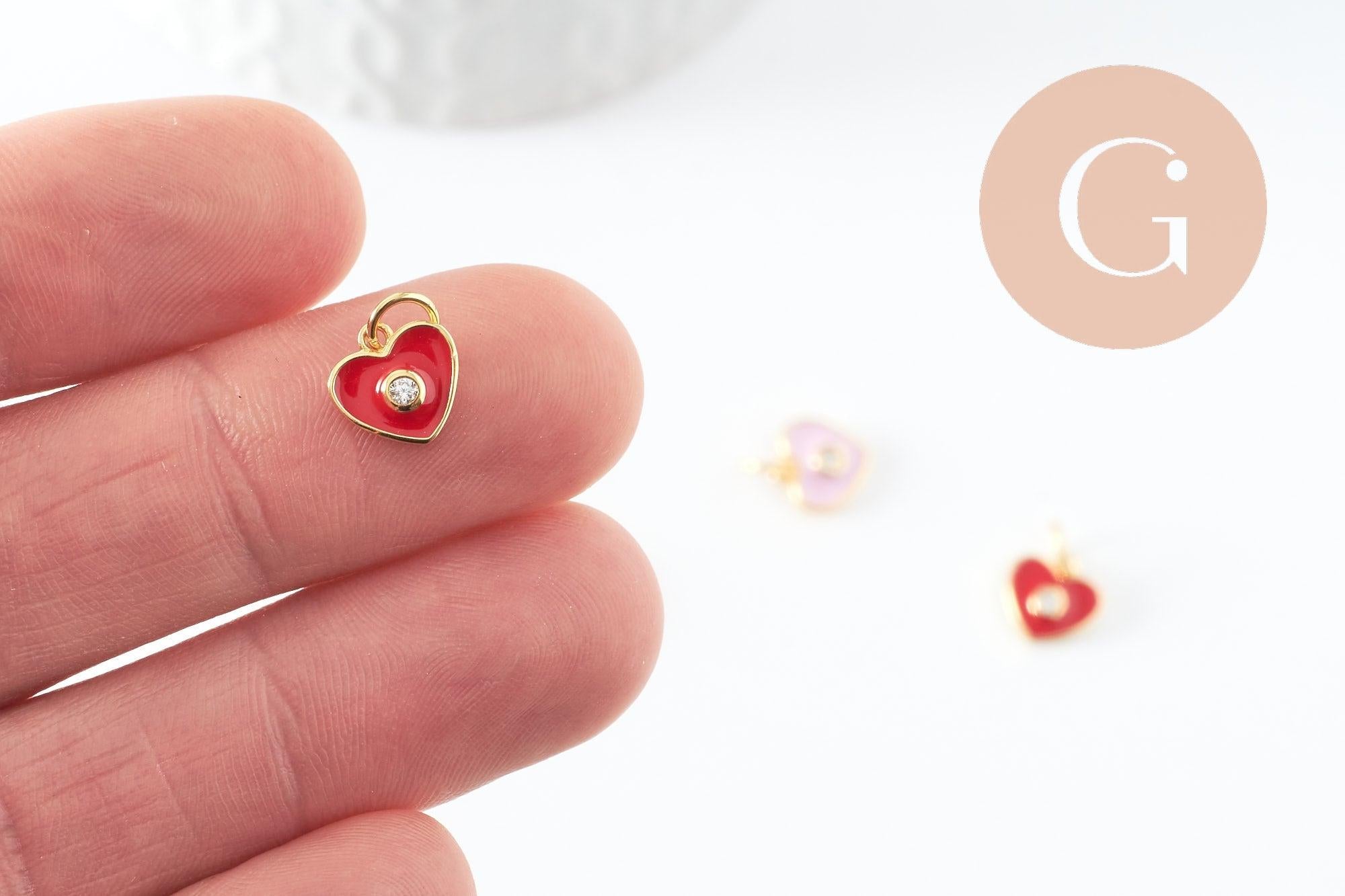 Colgante corazón de latón dorado esmaltado y circonitas 9x9mm, colgante dorado, corazón dorado, colgante de latón dorado, x1 (G3578)