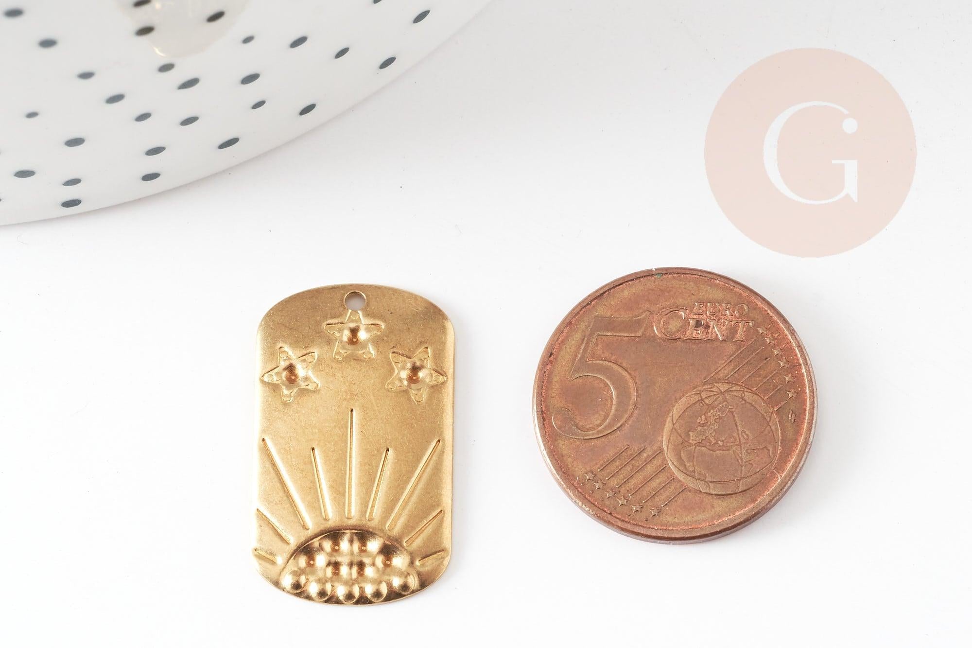 Pendentif rectangle soleil étoile laiton brut 25mm, x2 (G9706)