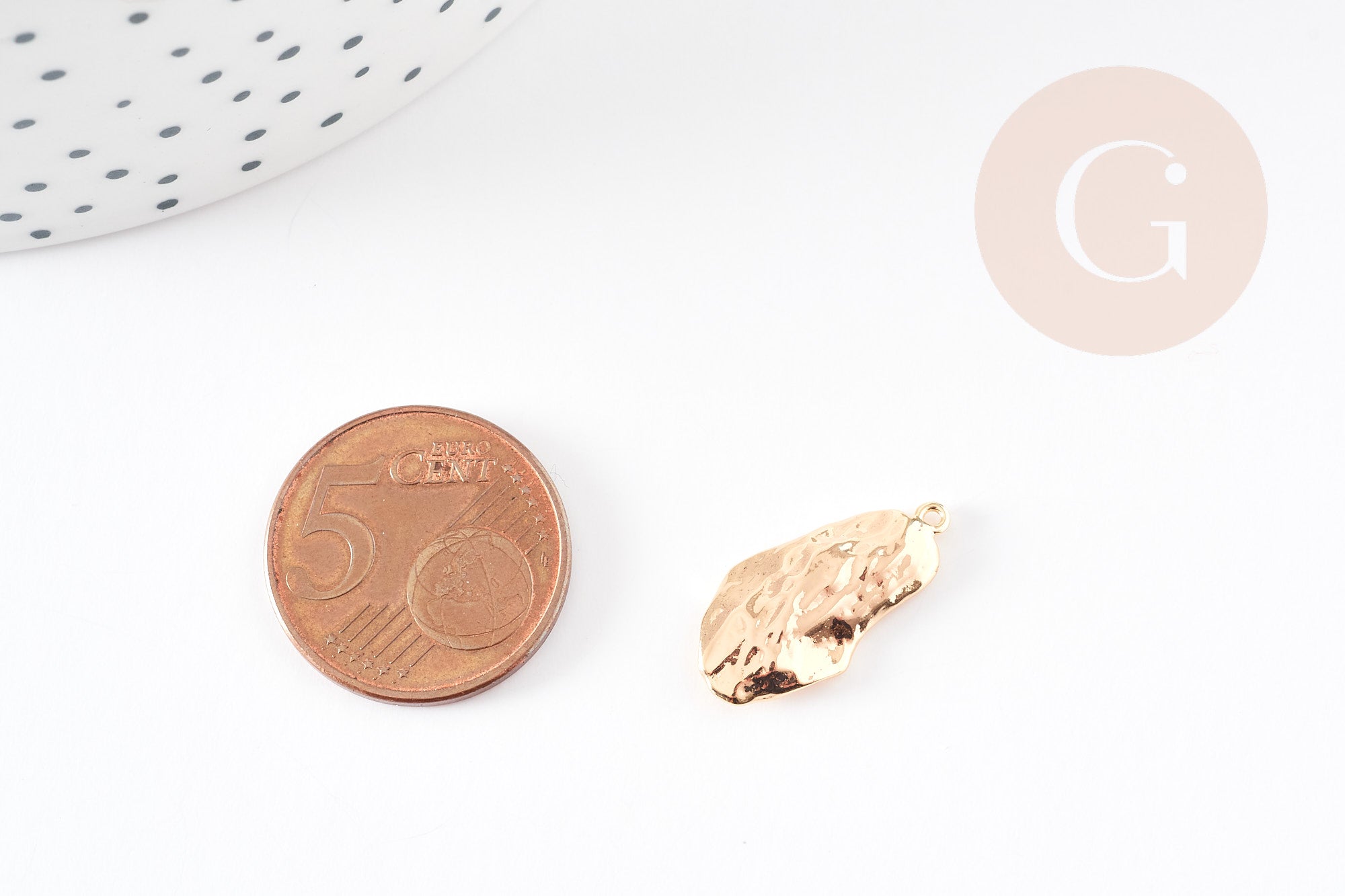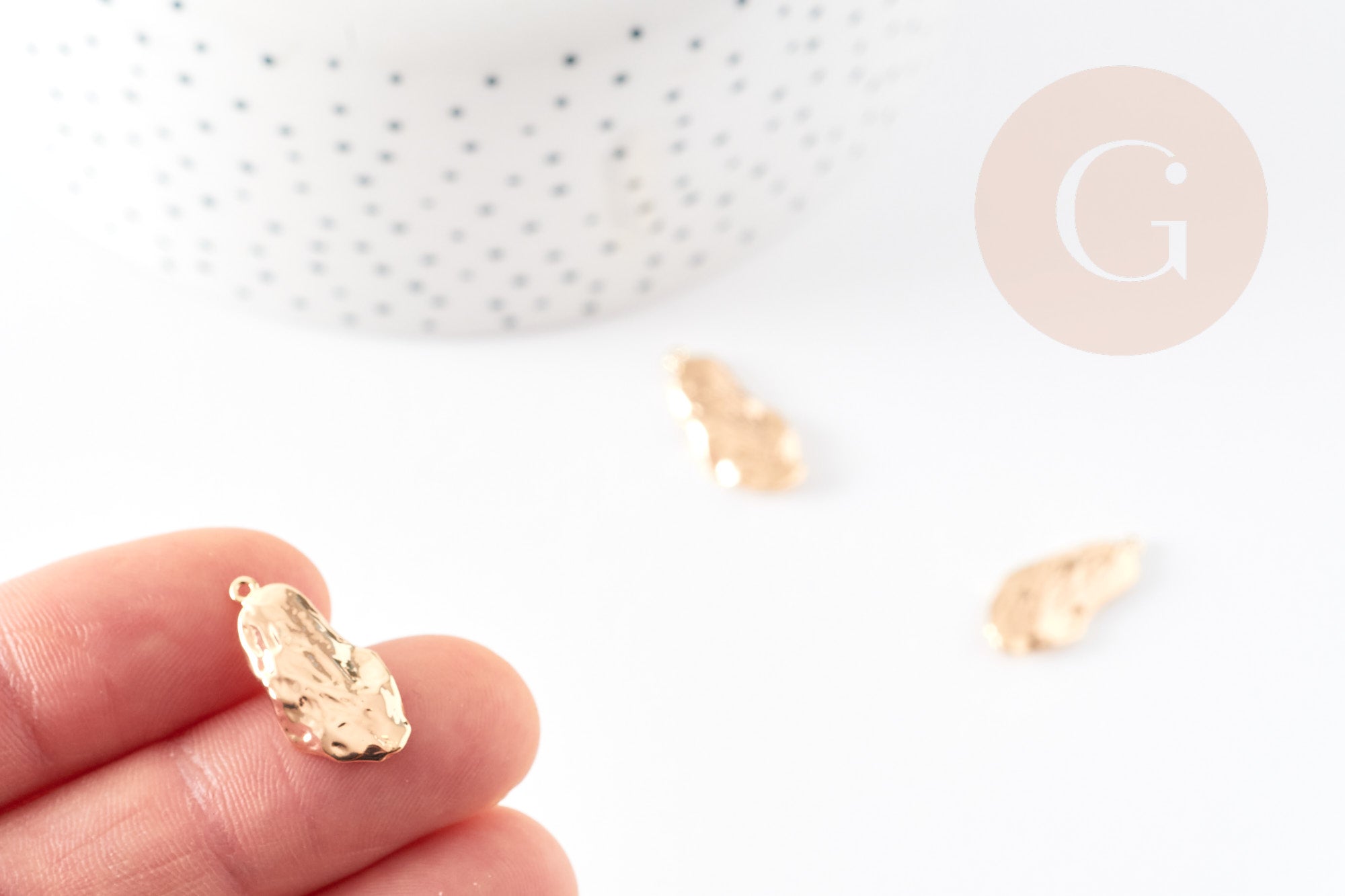 Pendentif ovale texturé laiton doré 18K 21mm, un pendentif doré pour création bijoux x1 G6256