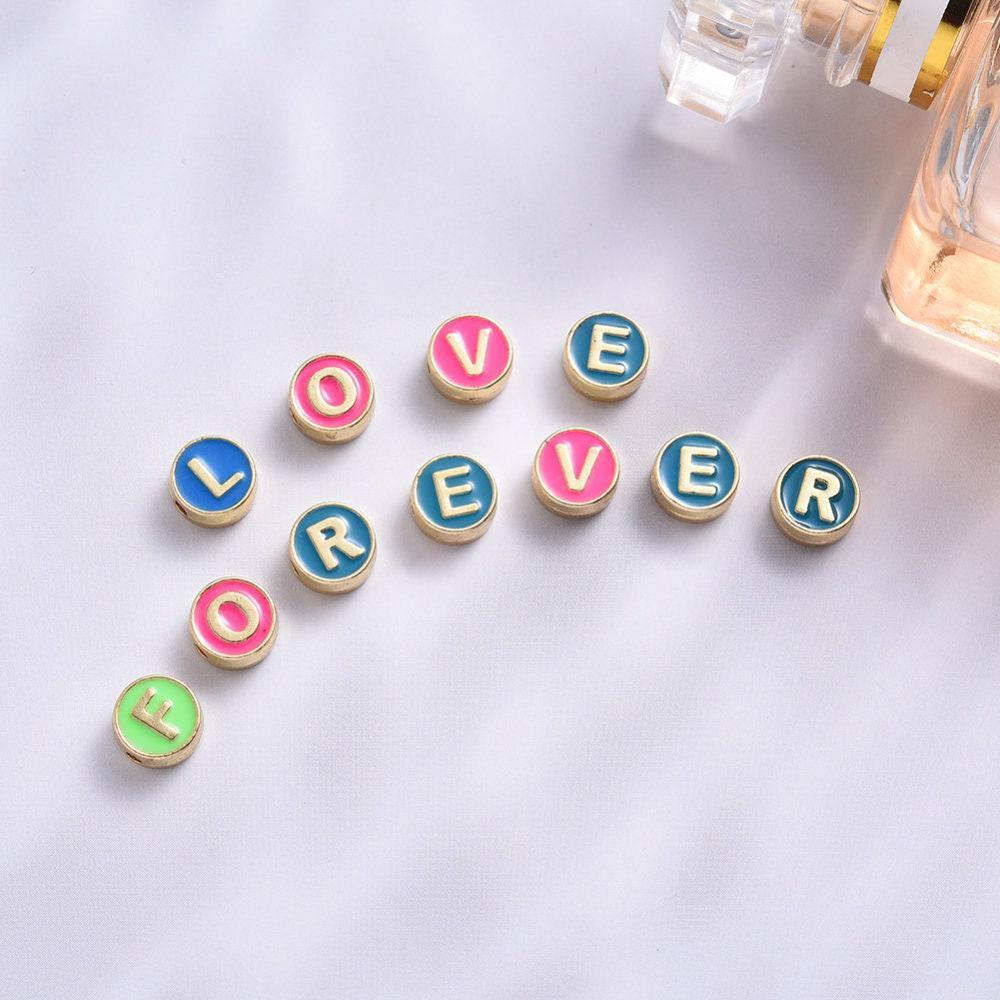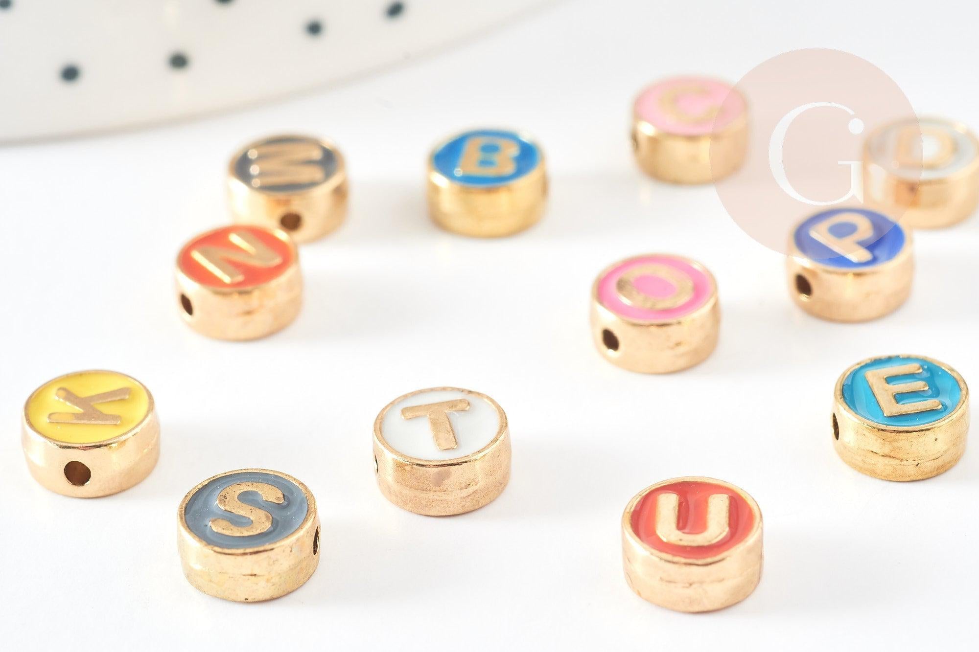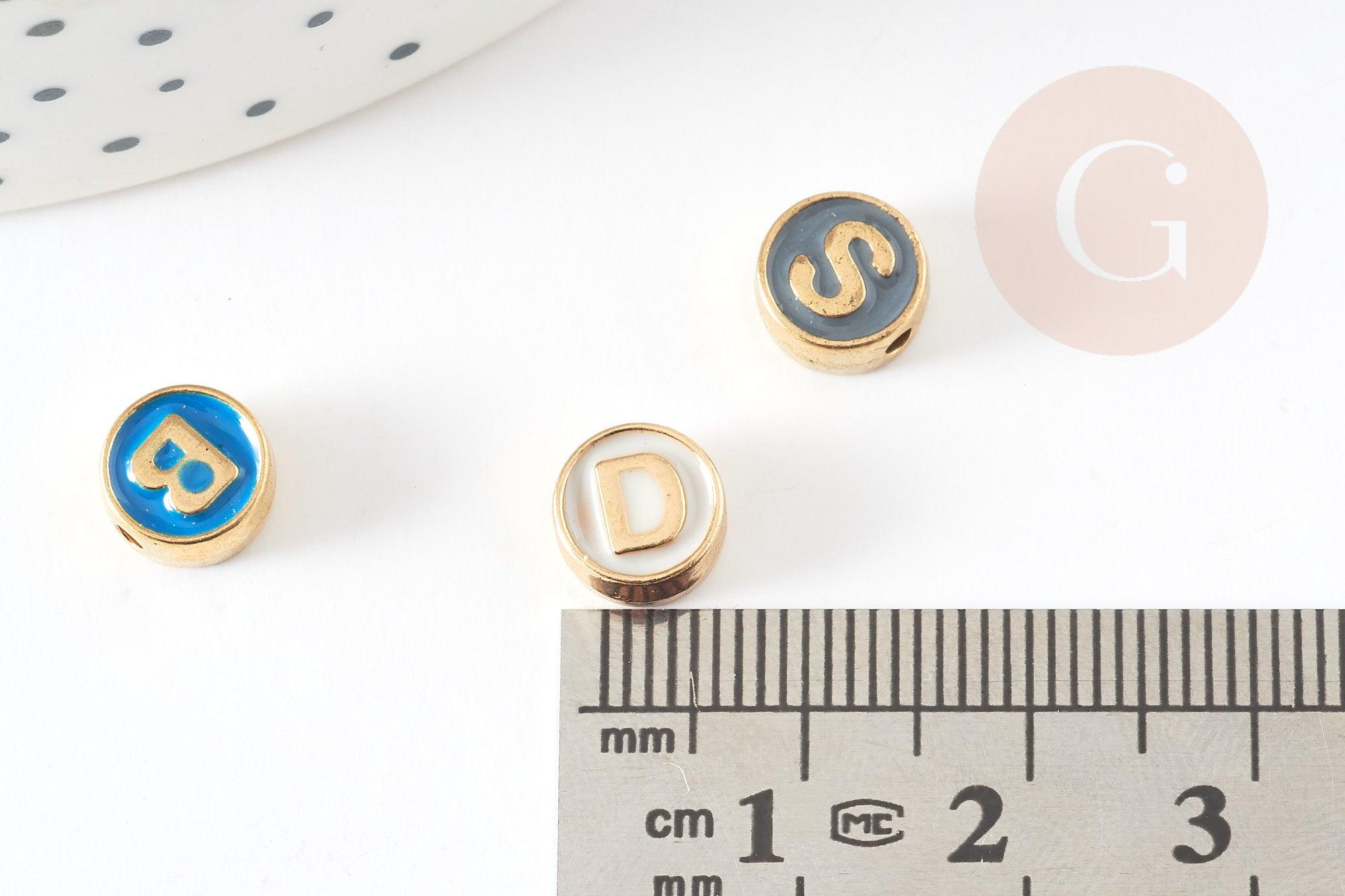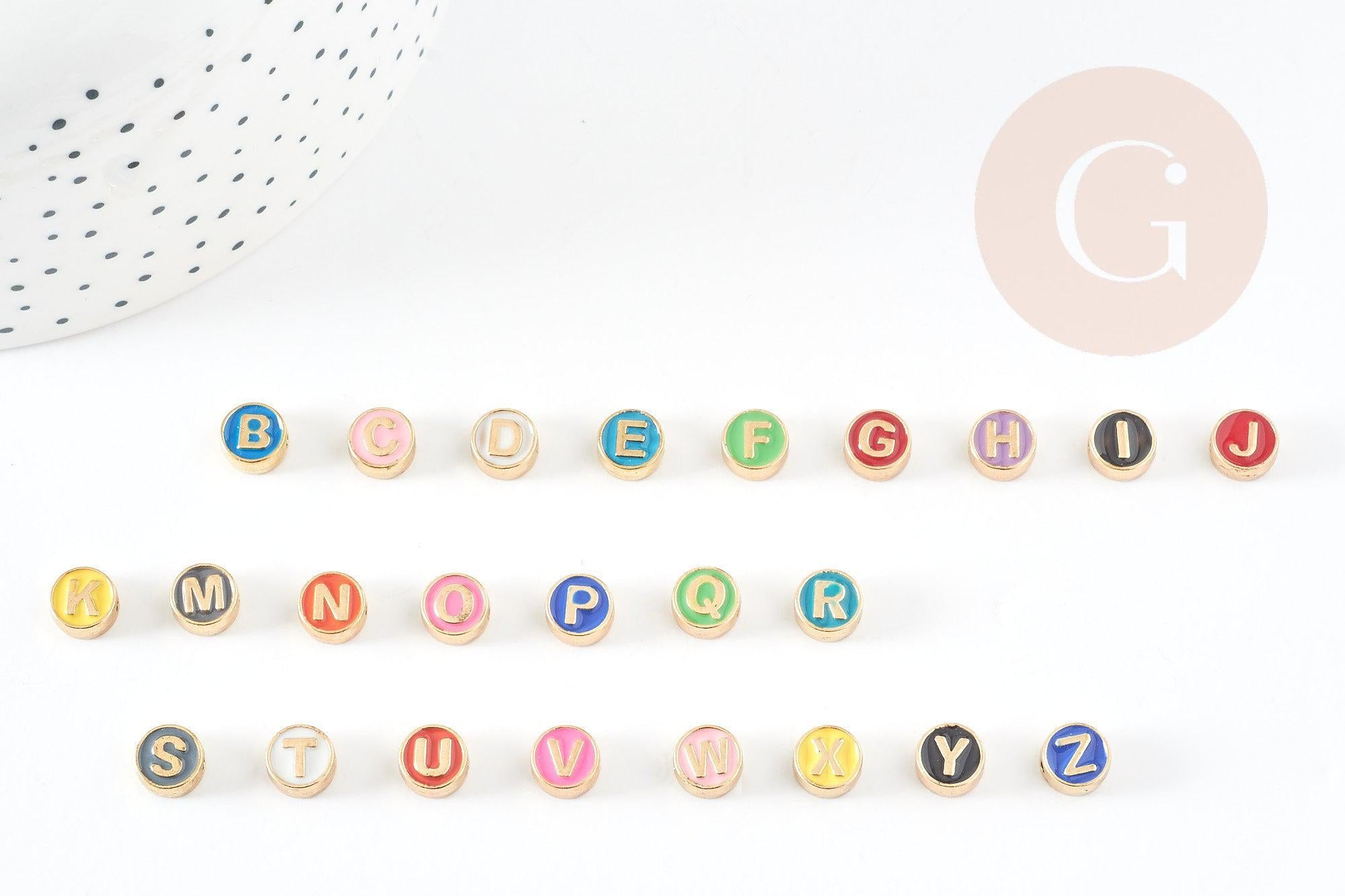 Cuenta redonda de zamac oro inicial esmalte multicolor 8mm, Colgante mujer, metal dorado, colgante inicial, 8mm, x1 G4296