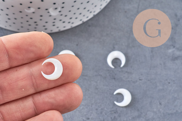 Lune nacre blanche naturelle,pendentif lune,coquillage blanc,corne percée,création bijoux,Pendentif nacre,13x12mm, les 2 (G3253)
