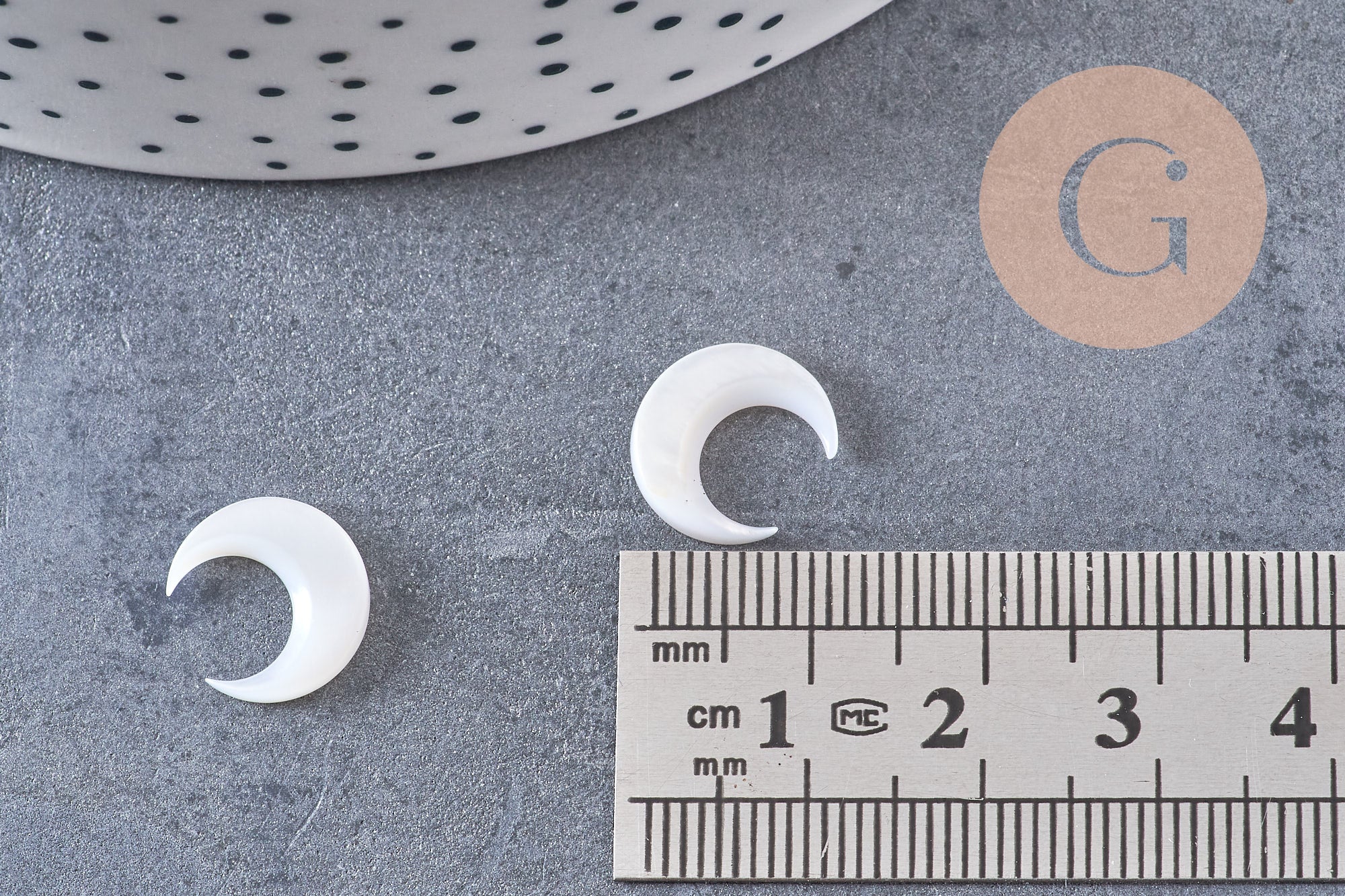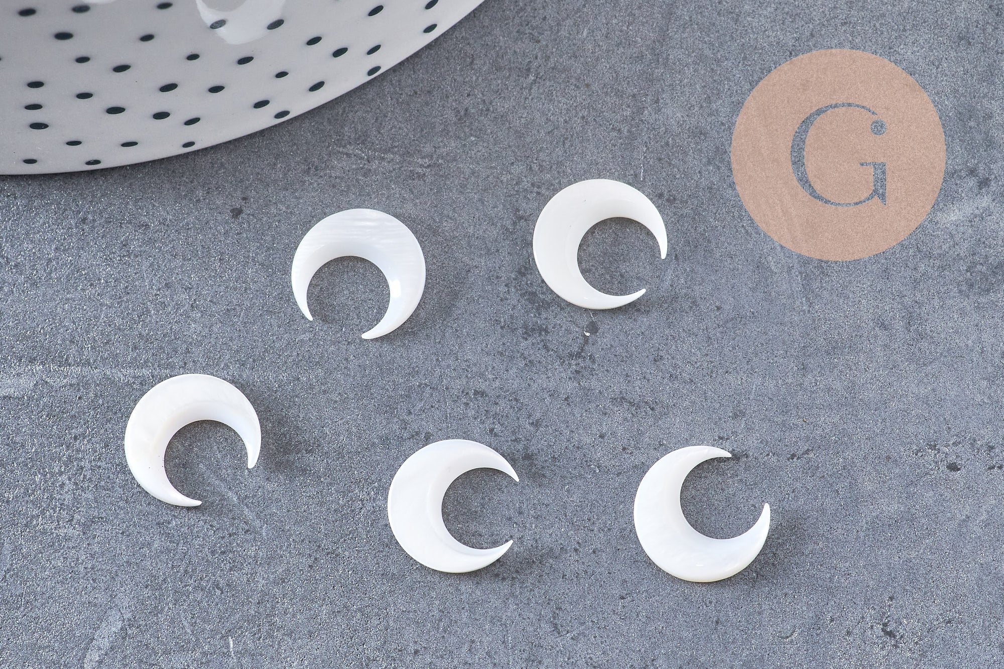 Enamórate de esta luna creciente hecha de nácar natural perforado.