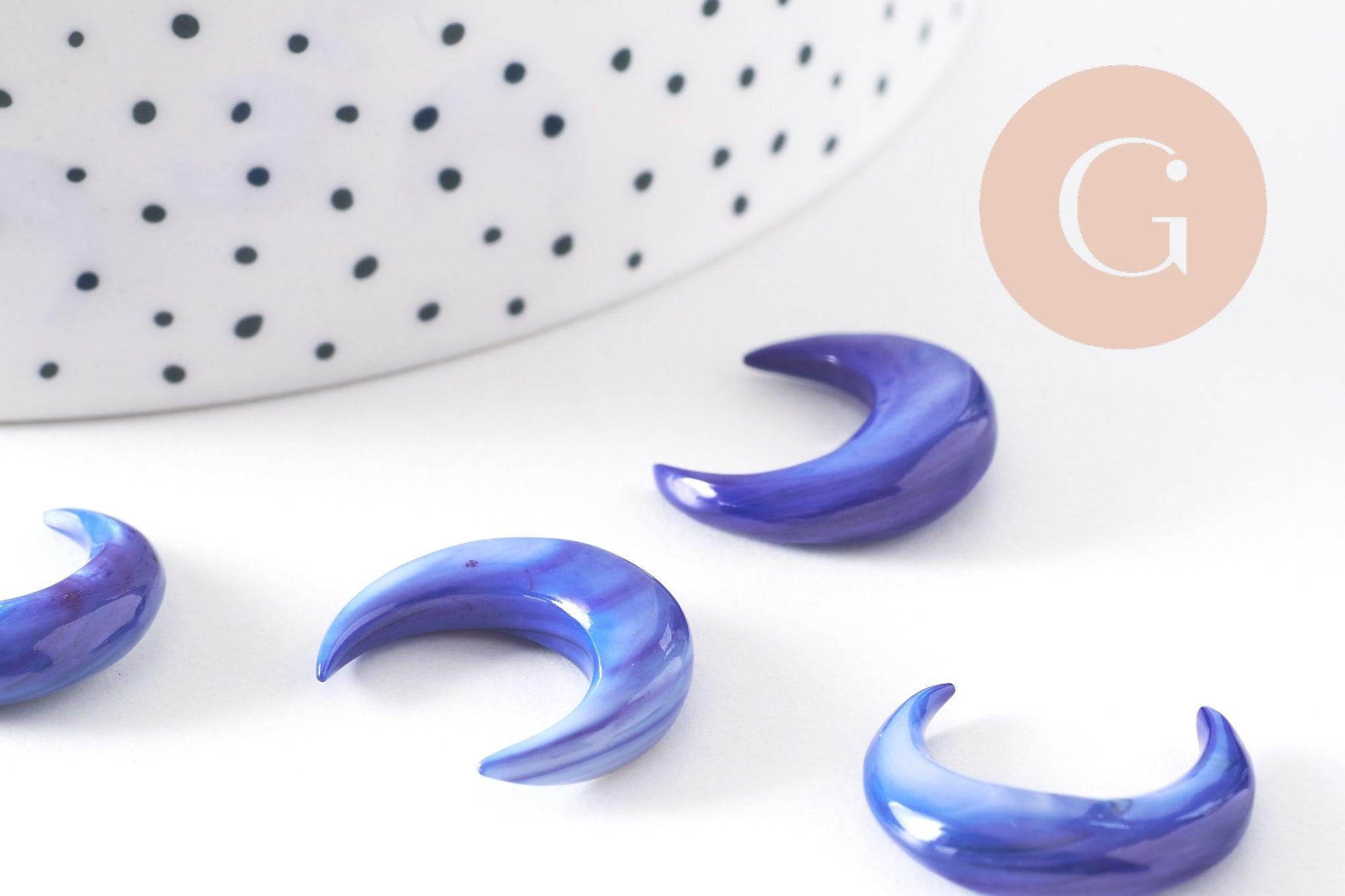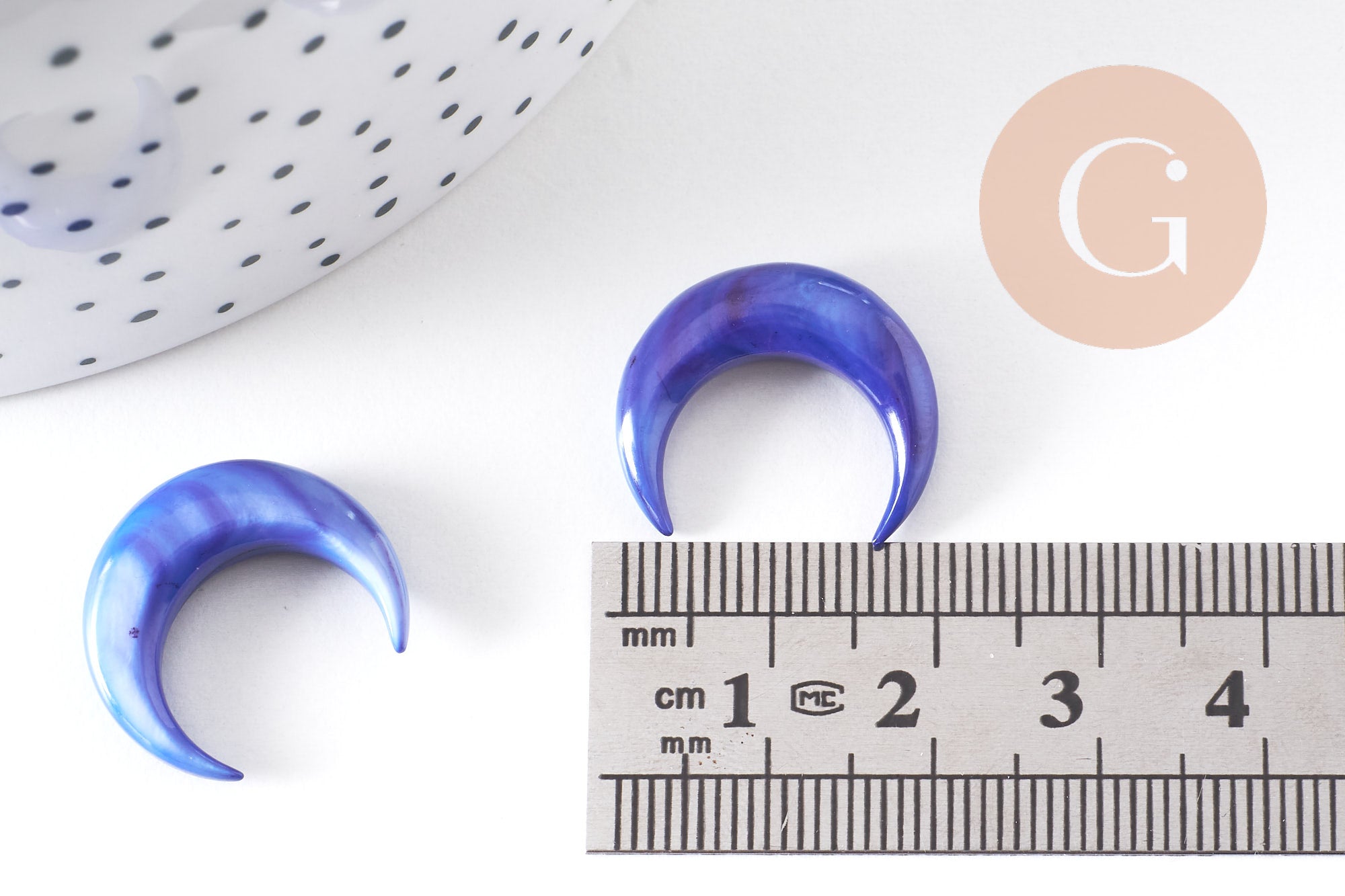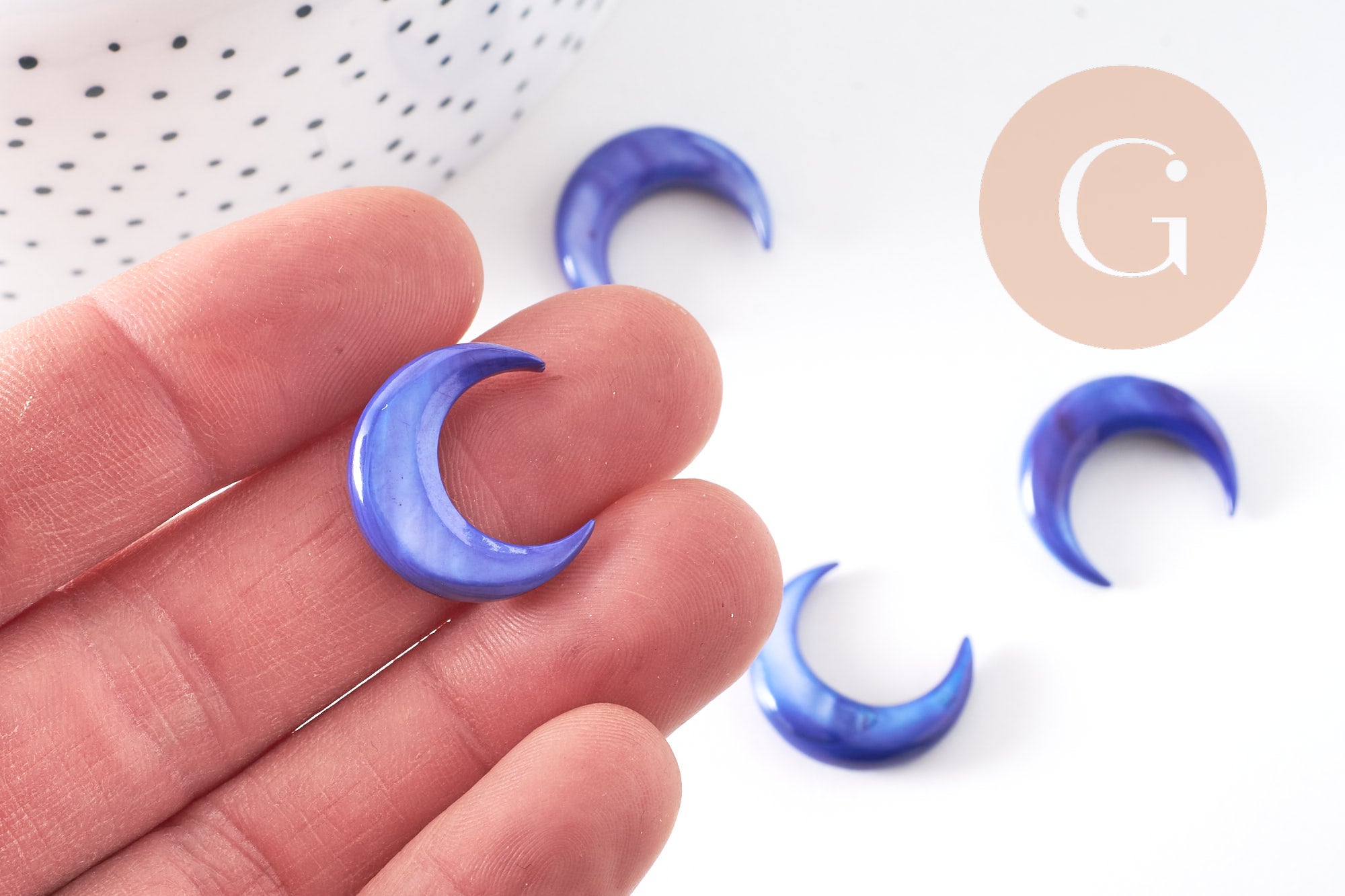 Lune nacre bleue naturelle, pendentif lune, coquillage teinté,non percé, Pendentif nacre, 18x20mm, X1 (G2779)