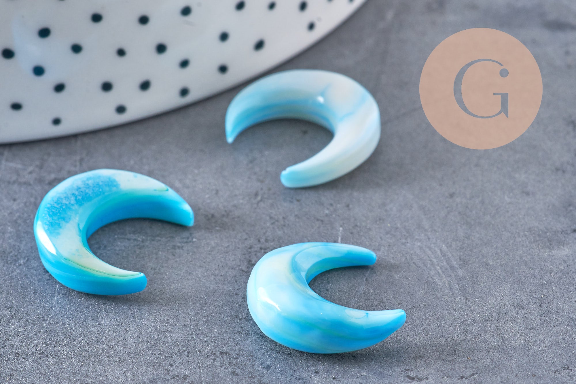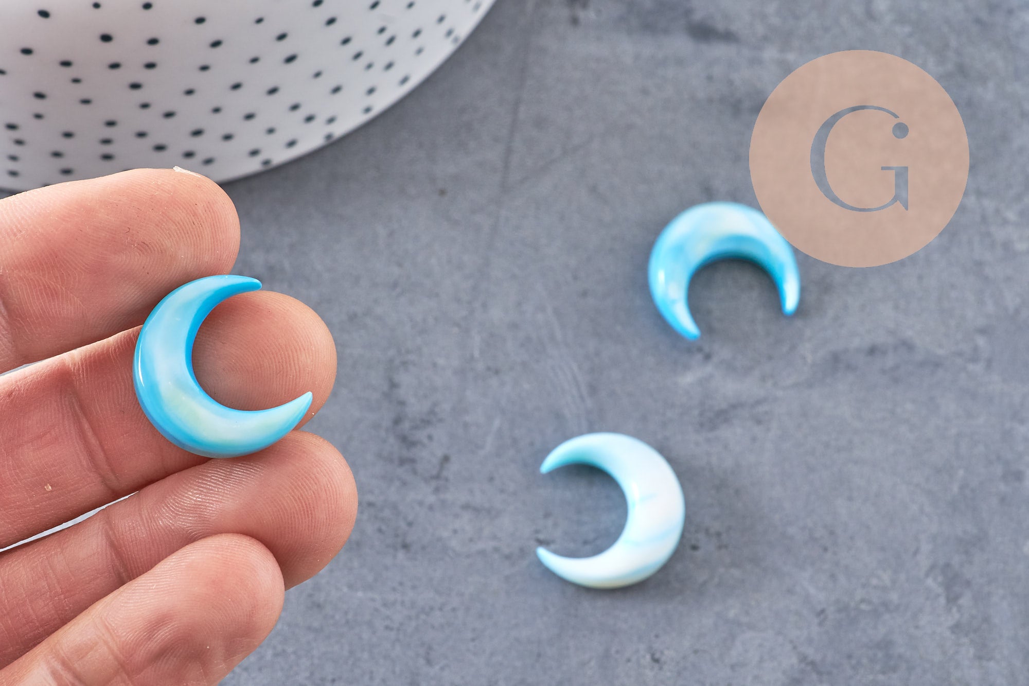 Luna de nácar azul natural, suministro creativo, colgante de luna, concha natural, sin perforar, creación de joyas, colgante de nácar, 18x19 mm