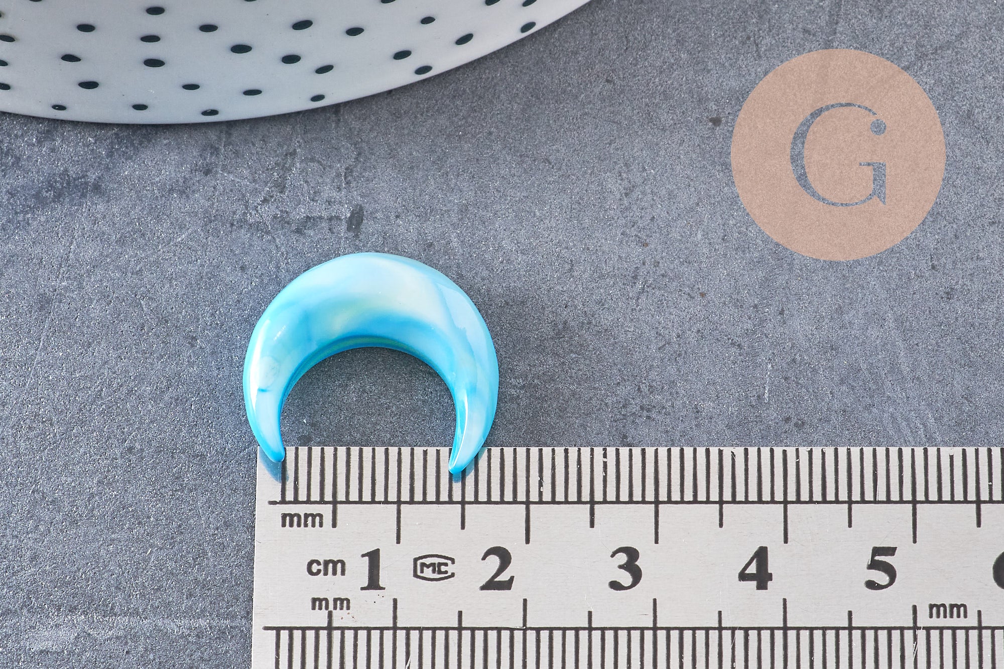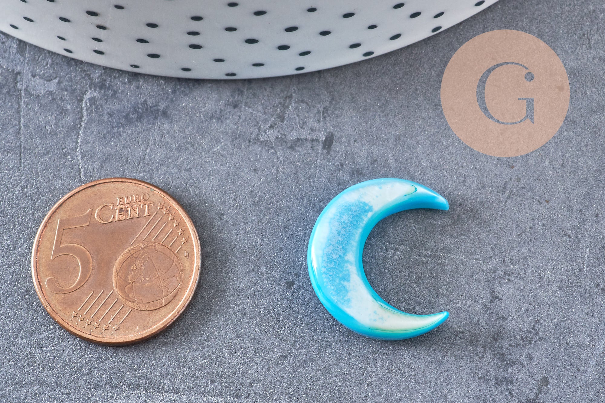 Luna de nácar natural azul, colgante de luna, concha natural, sin perforar, creación de joyas, colgante de nácar, 18x19 mm, X1 G0343