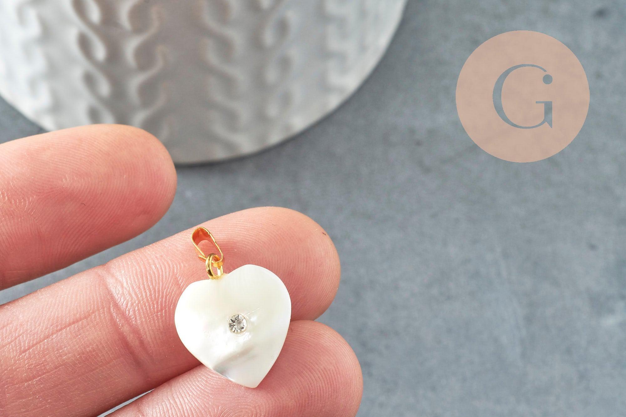 Colgante de corazón de nácar blanco natural con cristal de oro, suministro creativo, colgante de corazón, corazón de nácar, concha blanca, creación de joyas, 19 mm