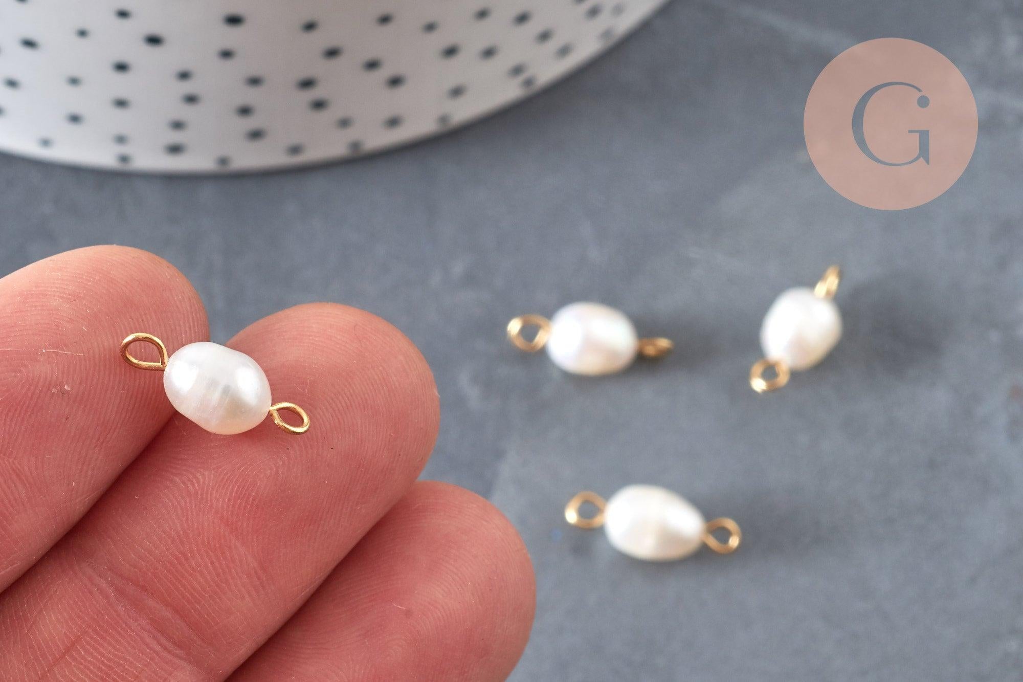 Colgante conector de perla natural latón bañado en oro de 18K 14,5-15mm, joya de perla de agua dulce, perla blanca, x1 G6964