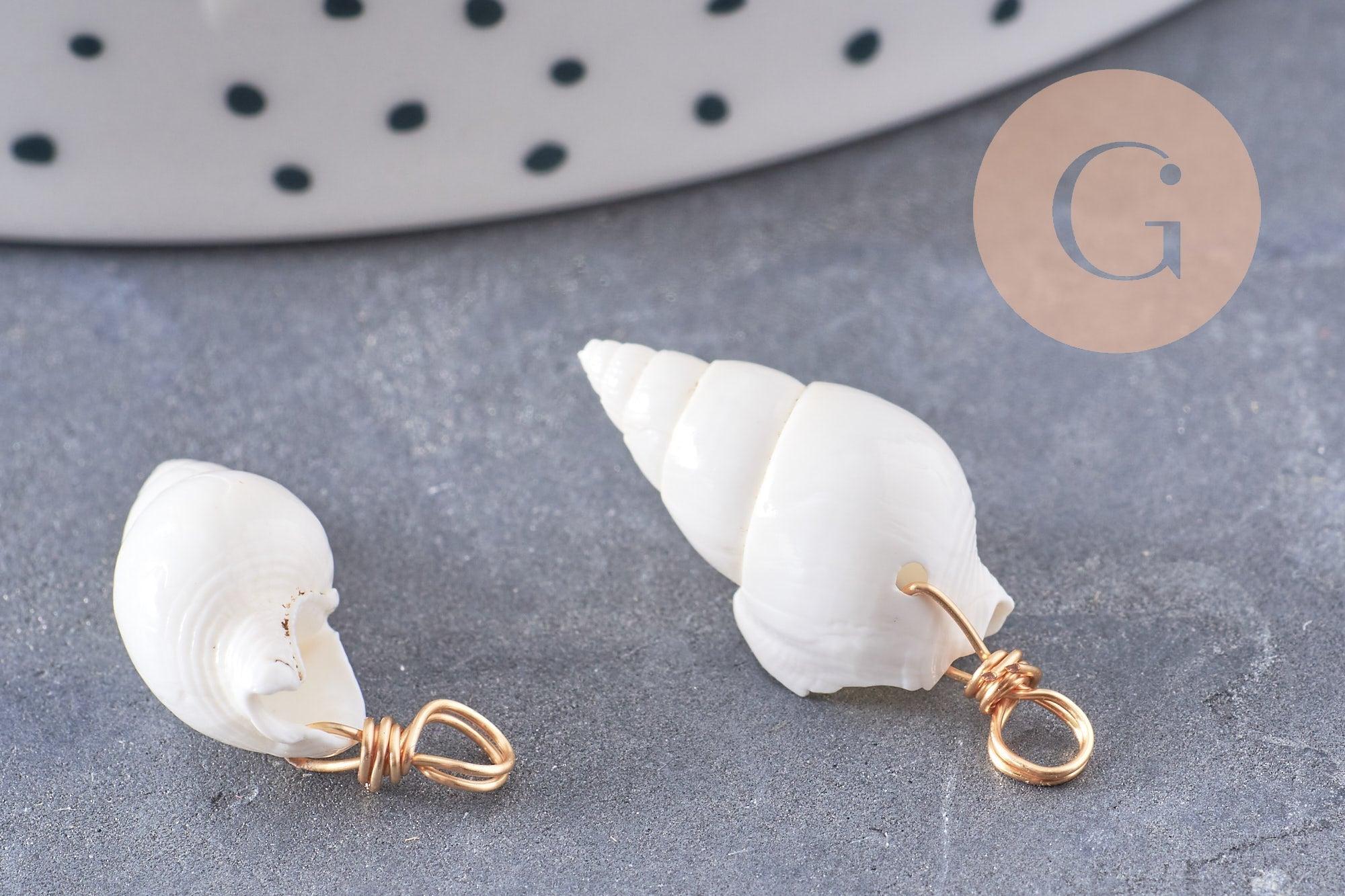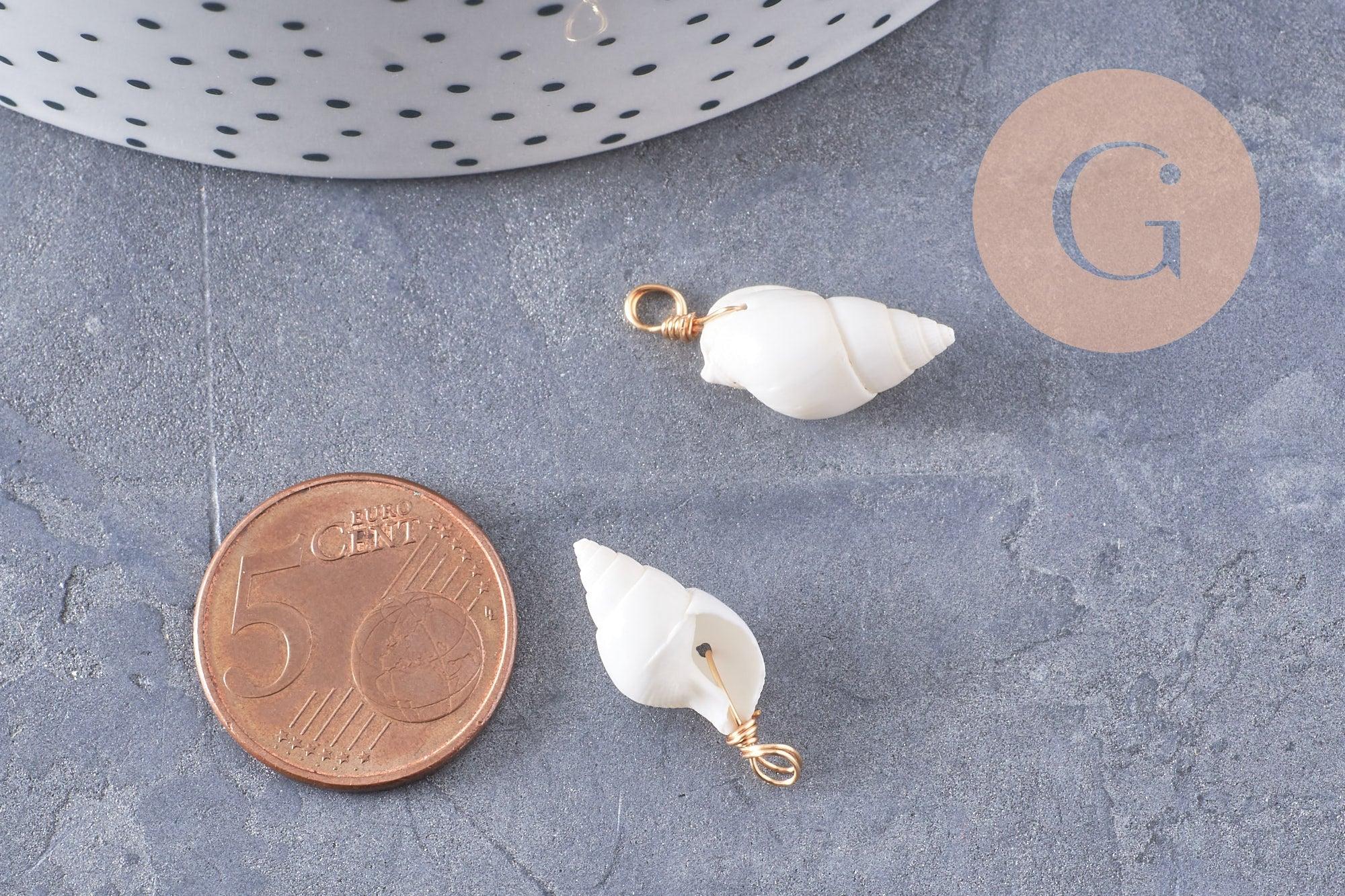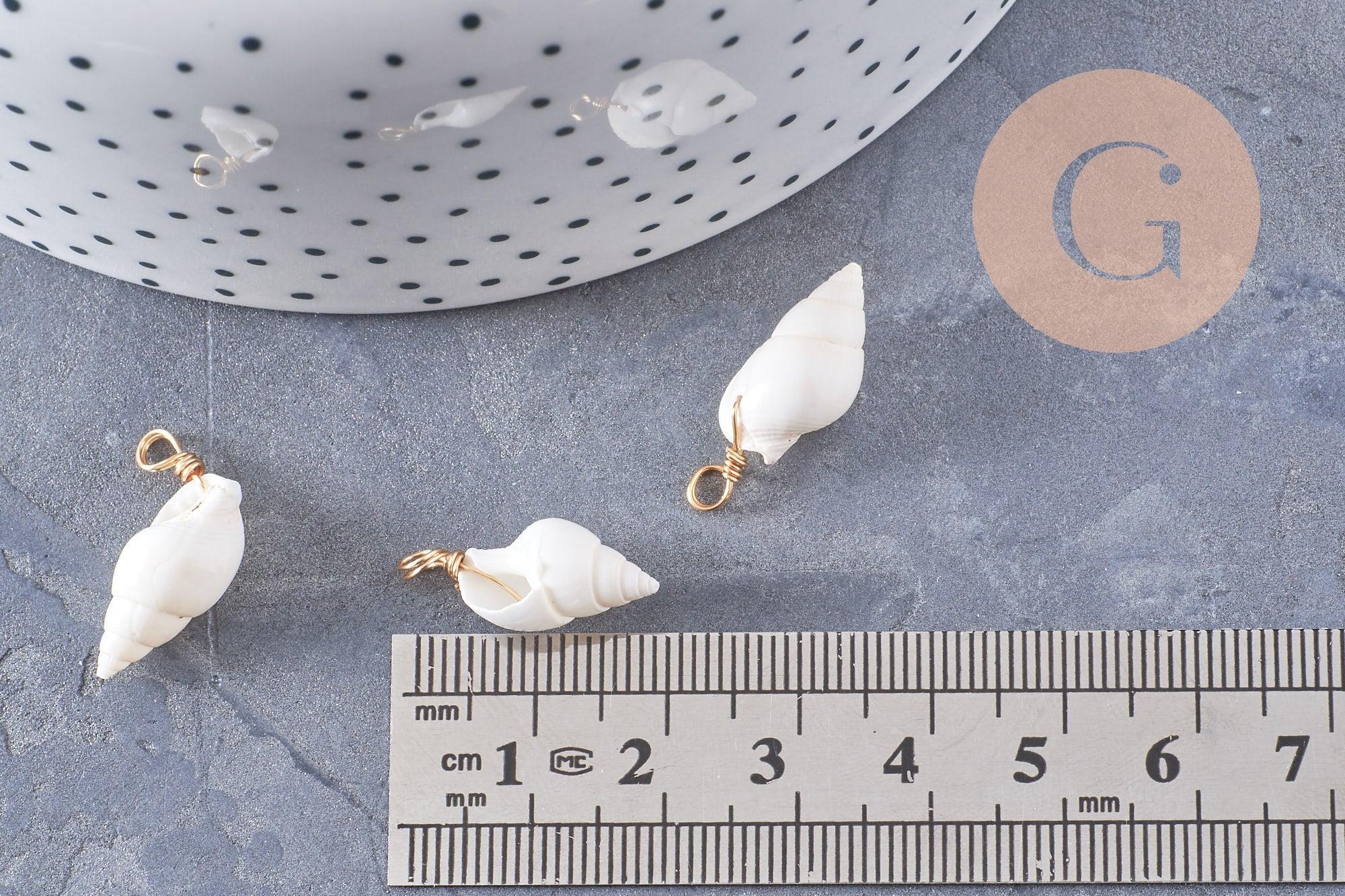 Añade un toque marinero y elegante a tus creaciones con estos colgantes en forma de concha blanca , realizados en zamac bañado en oro .