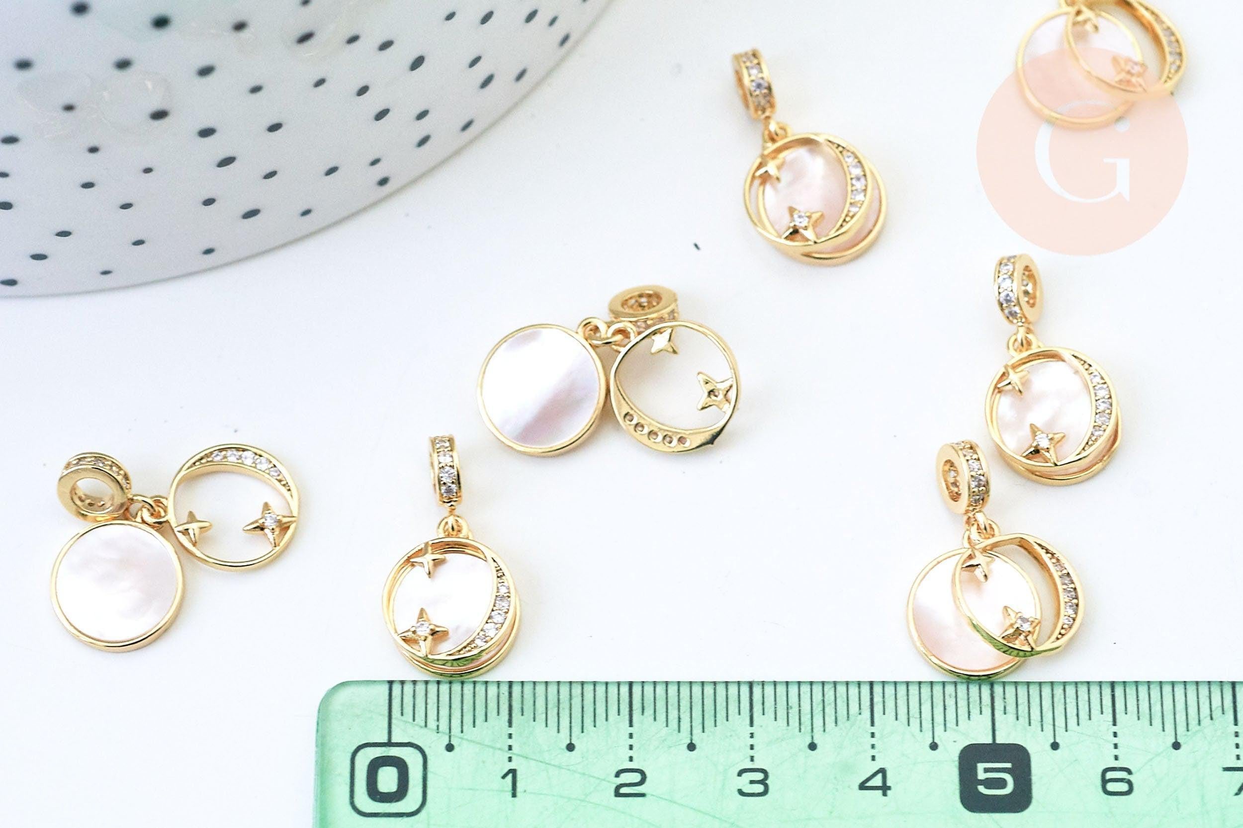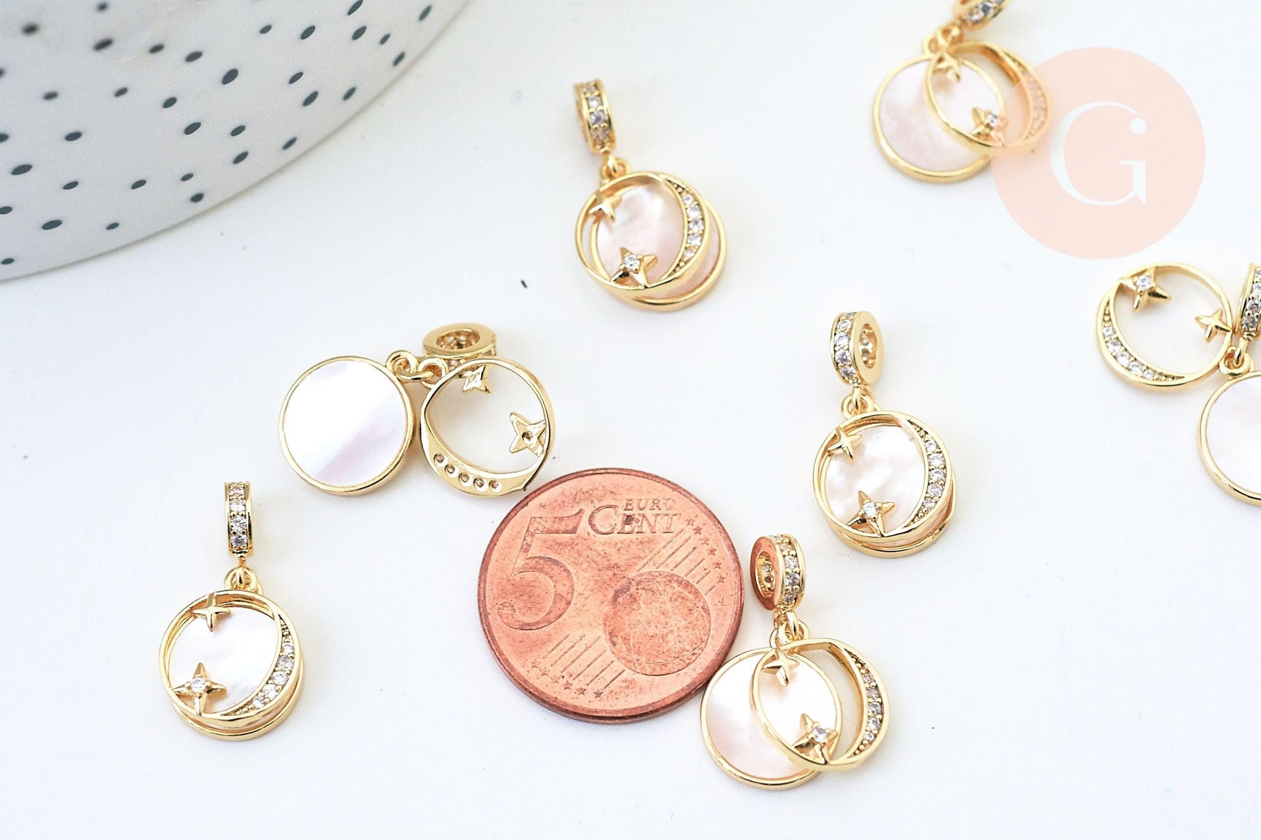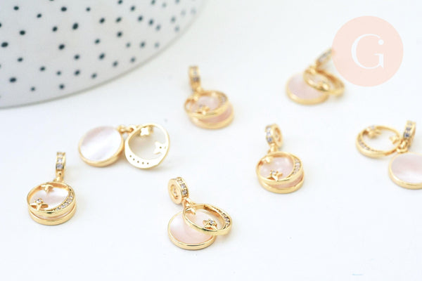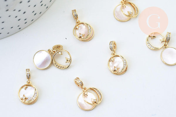 Colgante medalla luna redonda de latón dorado nácar móvil 13,5 mm, colgante de nácar de latón dorado para creación de joyas, medalla de oro, x1 G5682