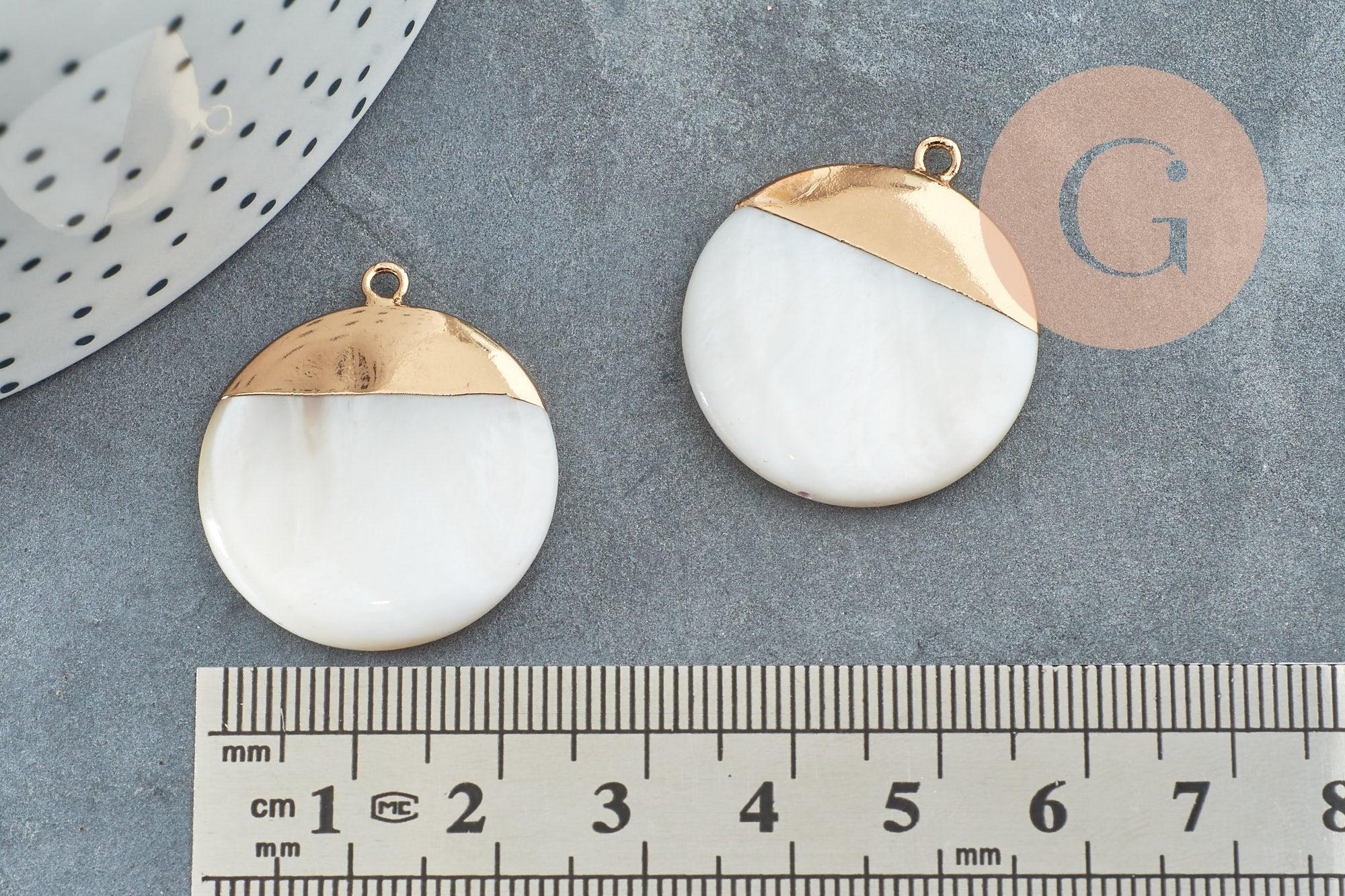 Colgante de nácar blanco natural dorado, suministro creativo, colgante redondo de nácar, concha blanca, 28,5 mm, x2 G5141