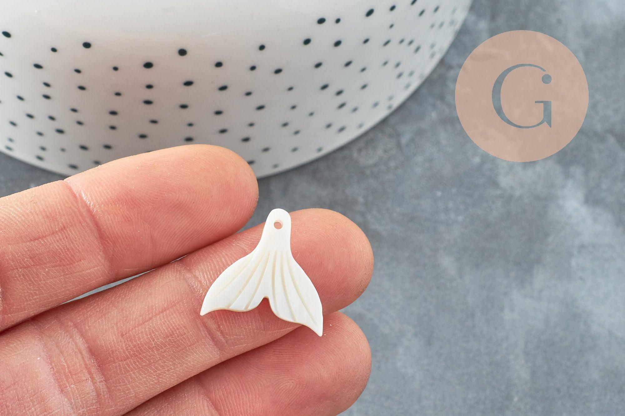 Aporta un delicado toque marino a tus creaciones con este colgante de cola de pez de nácar blanco natural . Símbolo de libertad, intuición y conexión con el océano, este colgante es ideal para joyas inspiradas en el mar y el mundo acuático . Su brillo nacarado aporta un toque de elegancia y refinamiento a todas tus creaciones DIY.