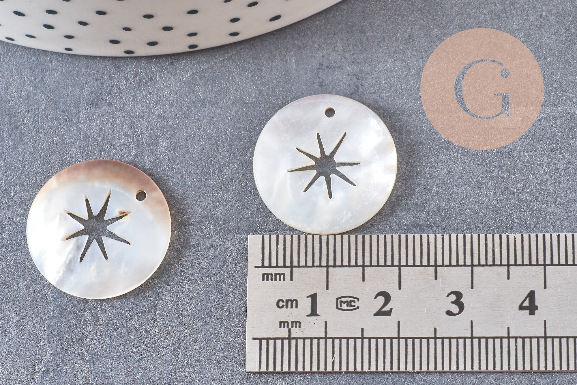 Colgante redondo de estrella de nácar, colgante de concha, concha beige, concha natural, creación de joyas, 20 mm, estrella, lote 5-G2179