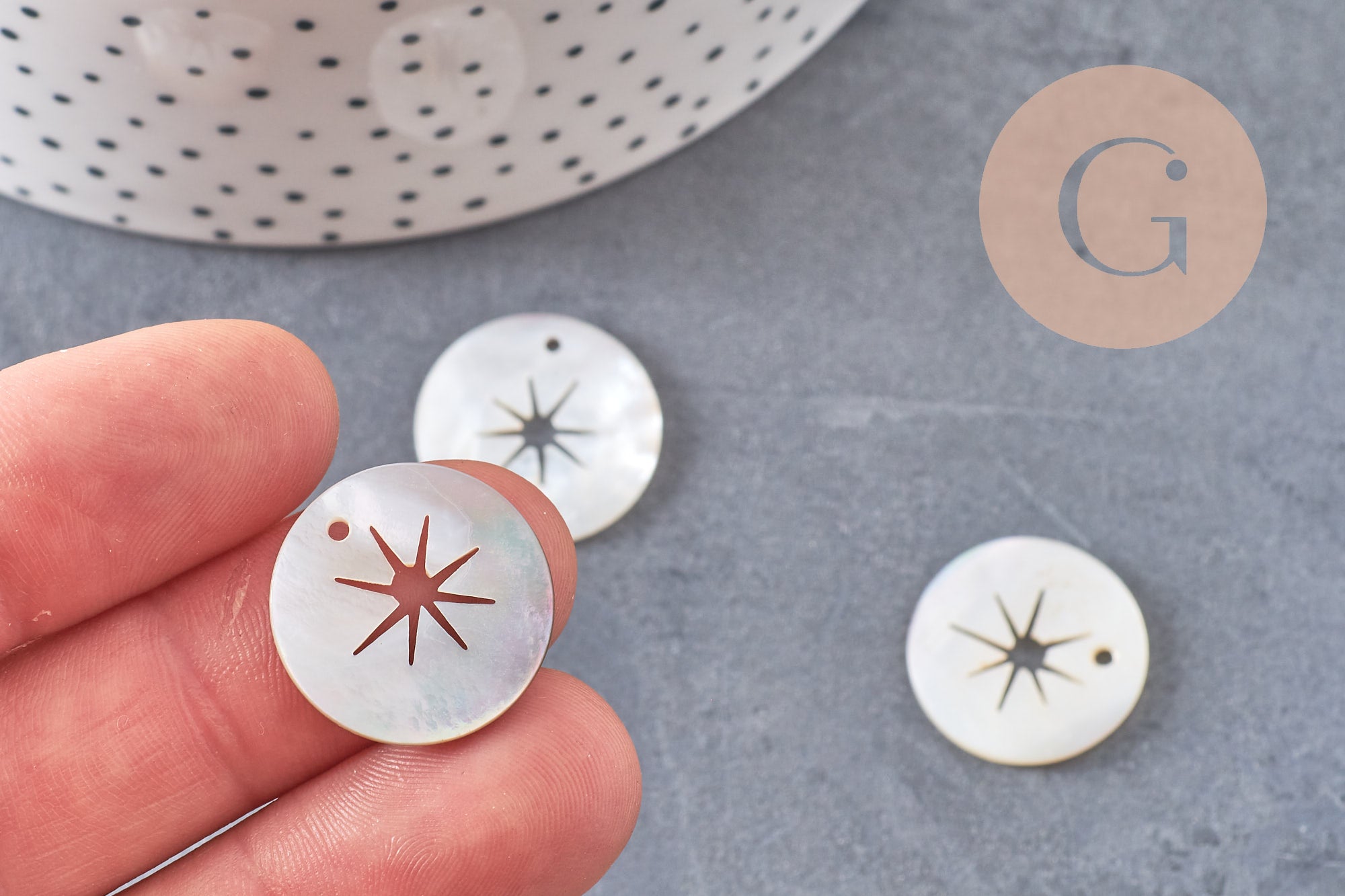 Colgante de estrella redonda de nácar, colgante de concha, concha beige, concha natural, creación de joyas, 20 mm, estrella, juego de 5