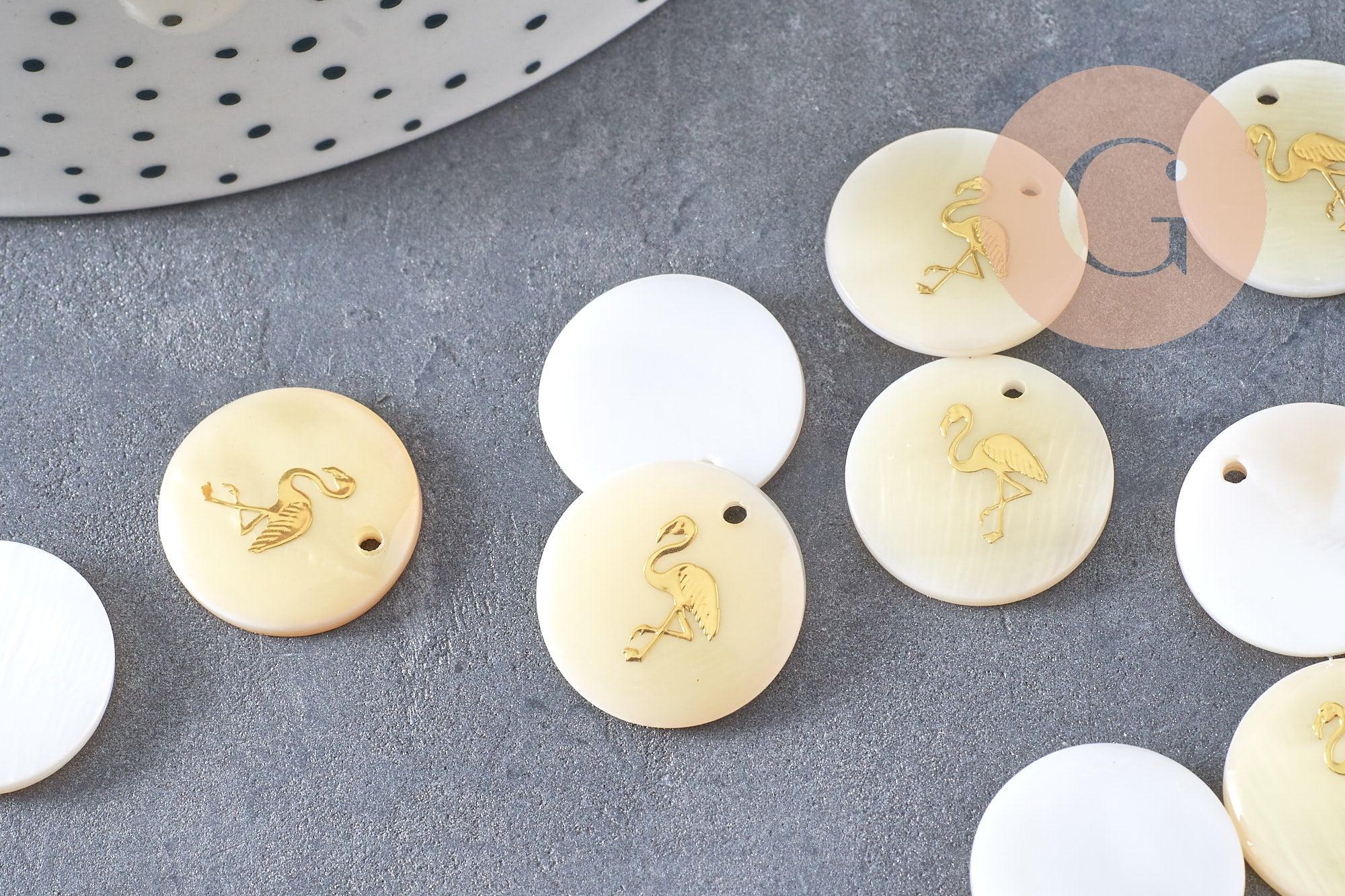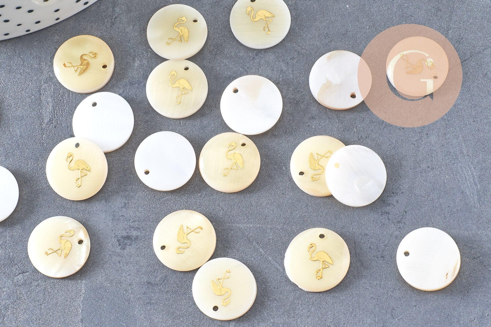 Colgante redondo de nácar con forma de flamenco, colgante de elefante, concha blanca, concha natural, creación de joyas, 16 mm, 1 agujero x10 (G0481)