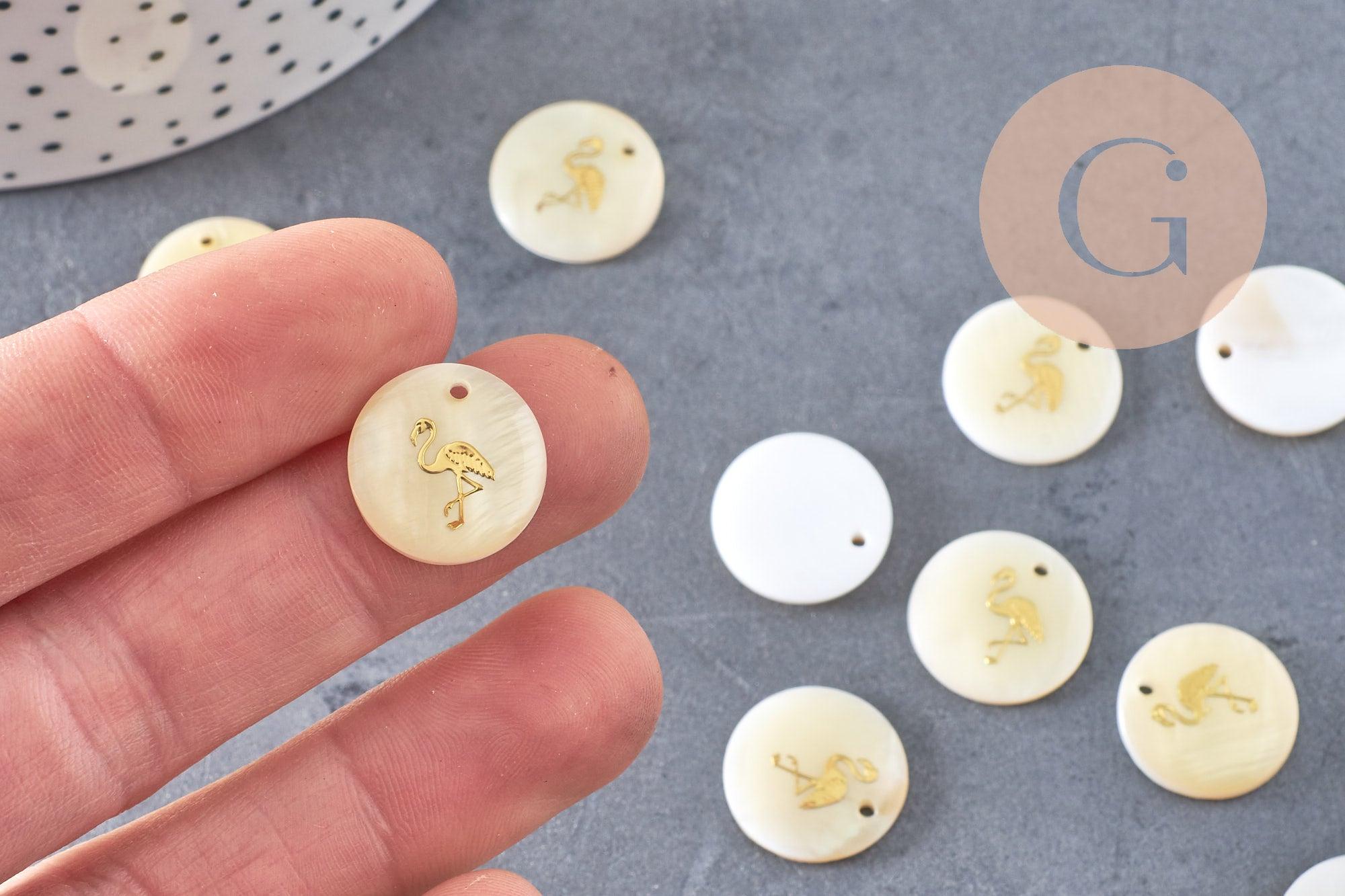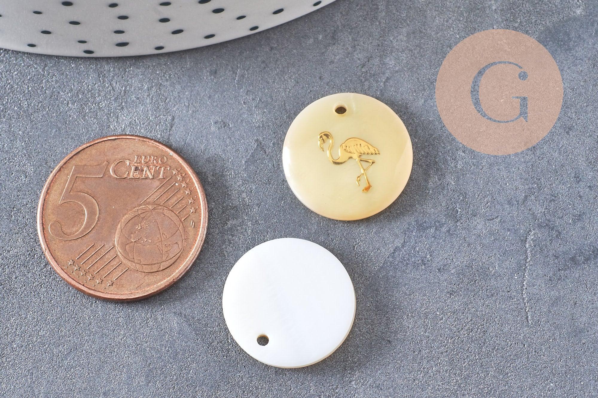 Pendentif rond nacre flamand rose, pendentif éléphant,coquillage blanc,coquillage naturel,création bijoux,16mm,1 trou x10 (G0481)