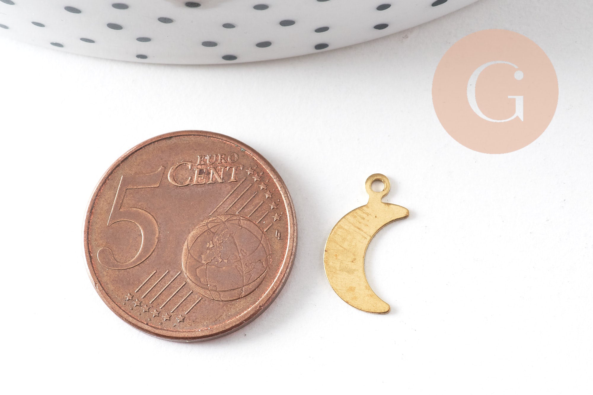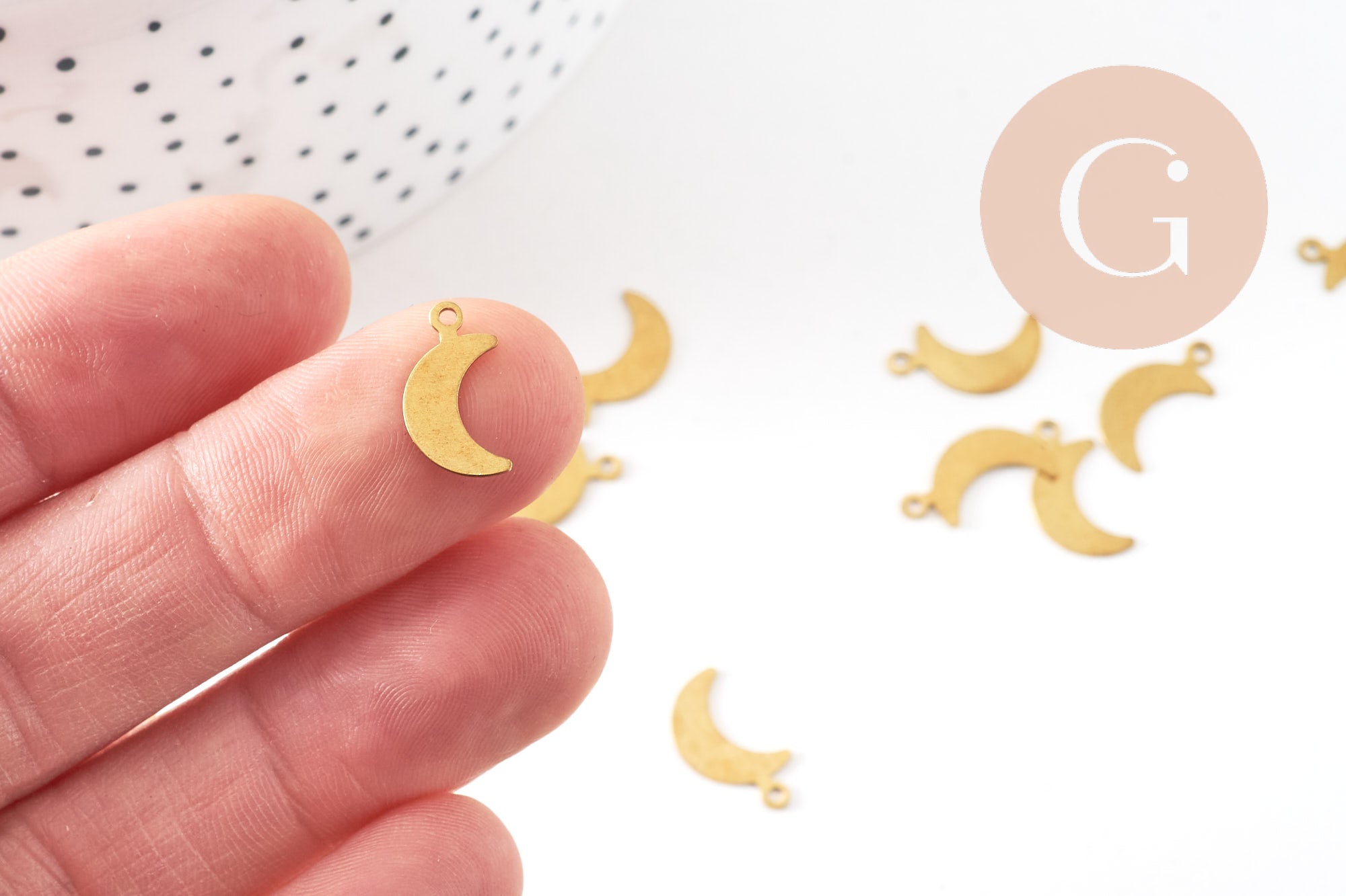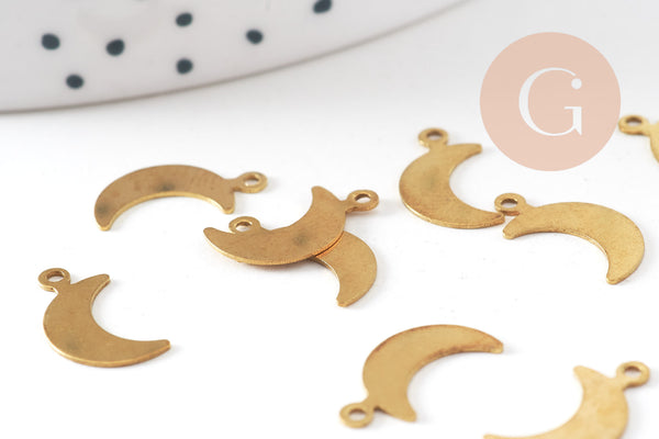 Colgante de luna de latón crudo de 11 mm, para fabricación de joyas de latón crudo, sin níquel, x10 (G4402)