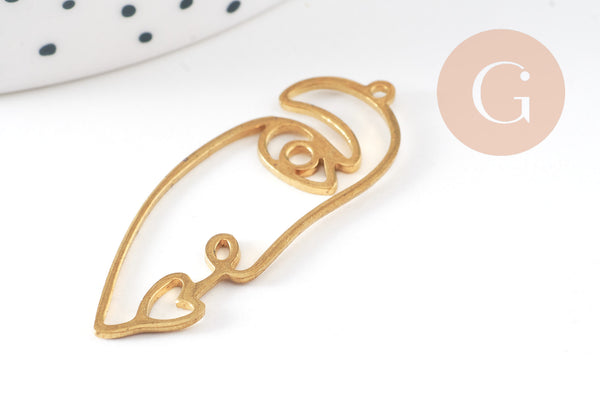 Pendentif visage laiton brut, fournitures pour bijoux, laiton brut,pendentif minimaliste ,bijoux moderne, x1,41x15mm,G3243