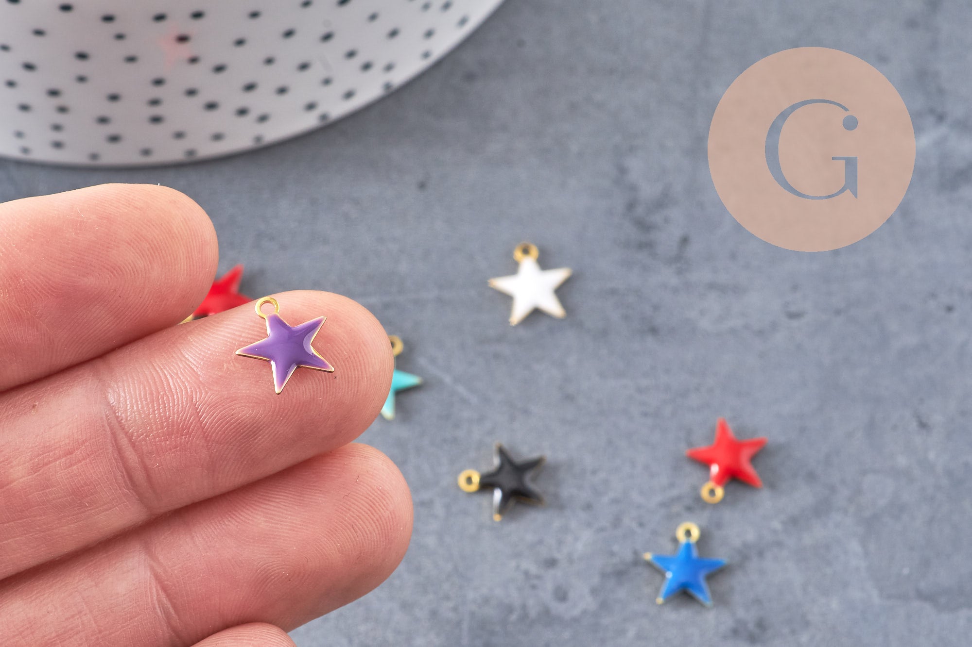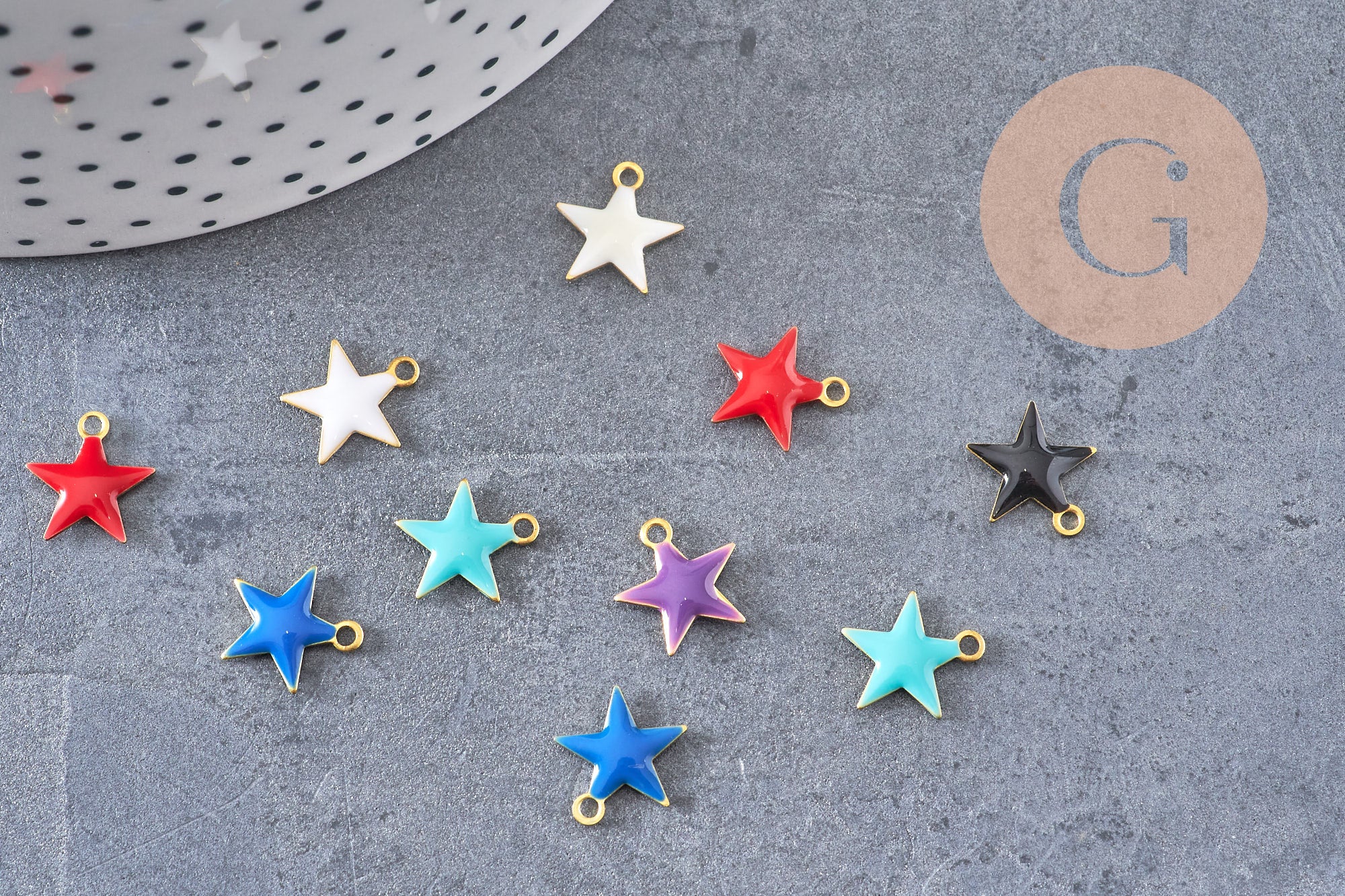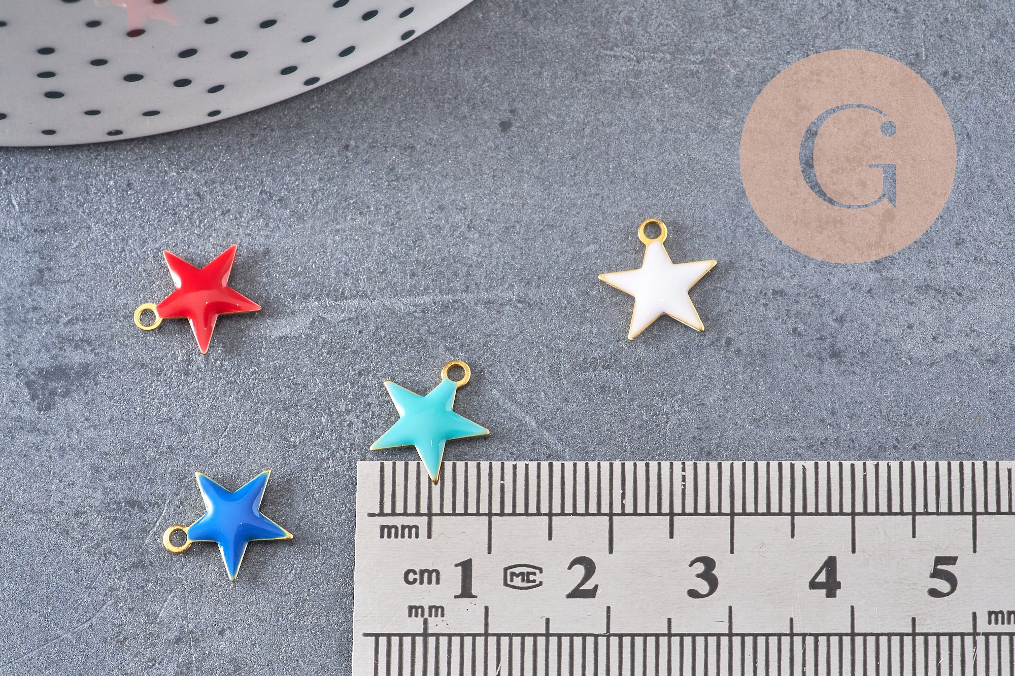 Juego de 10 colgantes redondos de latón decorados con esmalte azul rey. Un accesorio ideal para crear tus propias joyas: pendientes, pulseras y collares.