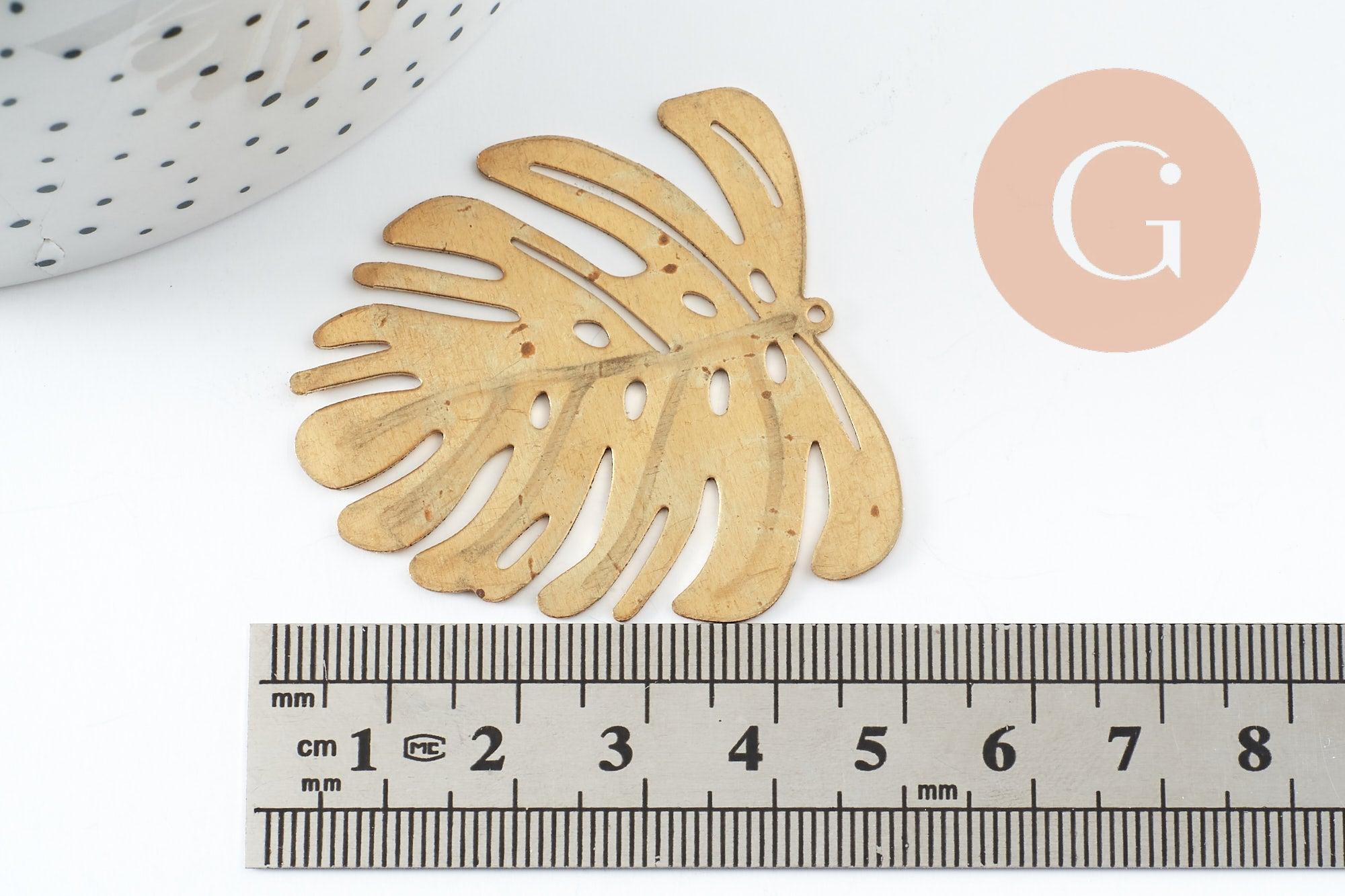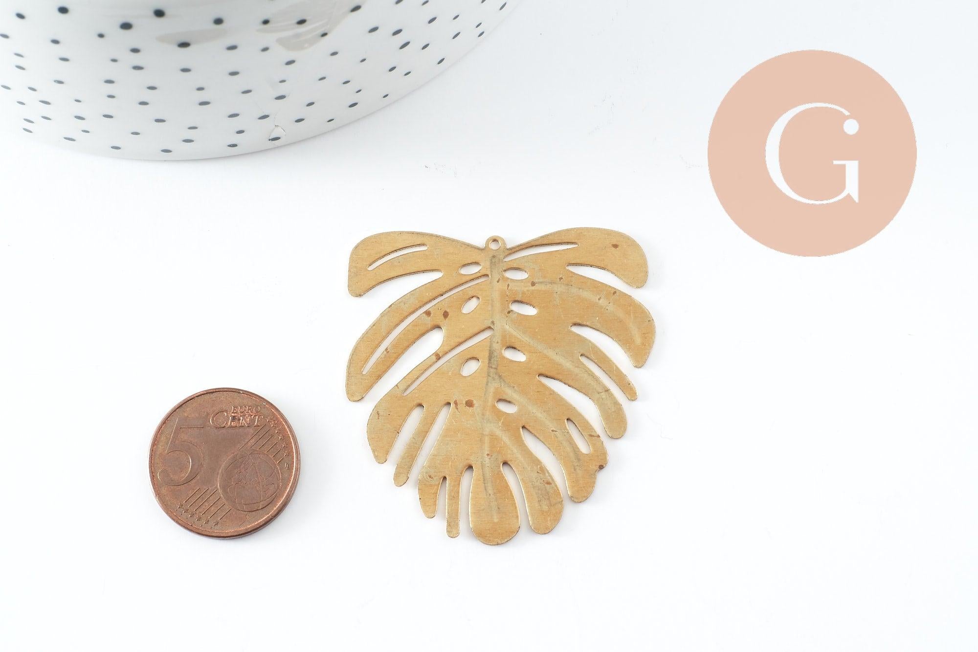 Pendentif feuille laiton,fourniture bijou,breloque laiton brut,bijou laiton,feuille monstera 45mm, x1 (G0917)